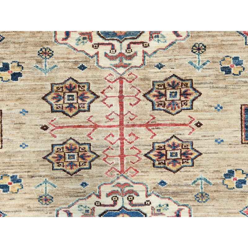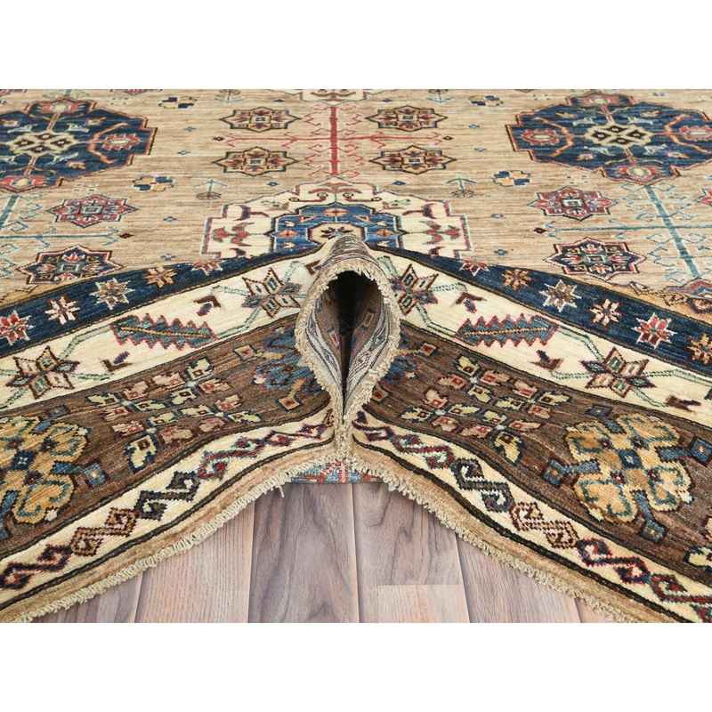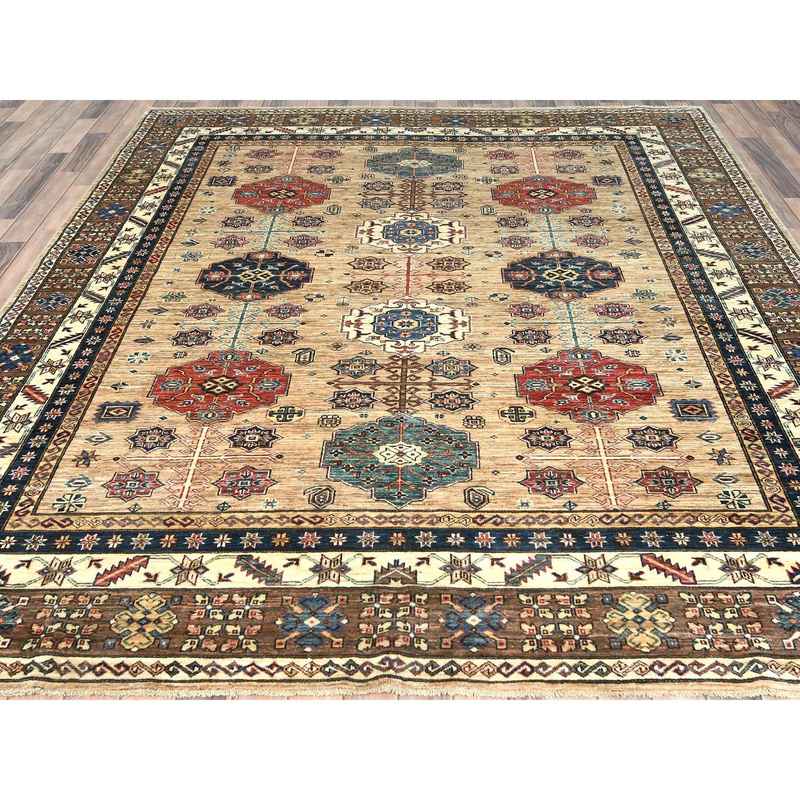 8’x9’9″ Wheat Color, Dense Weave Soft Wool, Hand Knotted Afghan Super Kazak with Geometric Design, Vegetable Dyes, Oriental Rug Sh82277