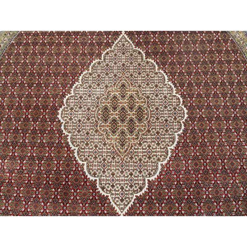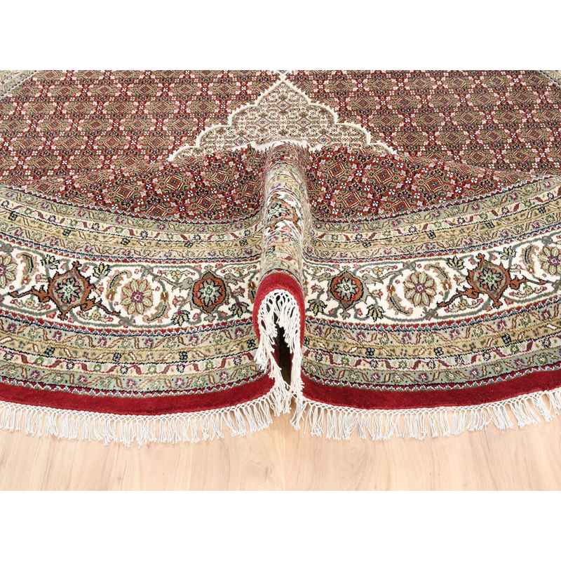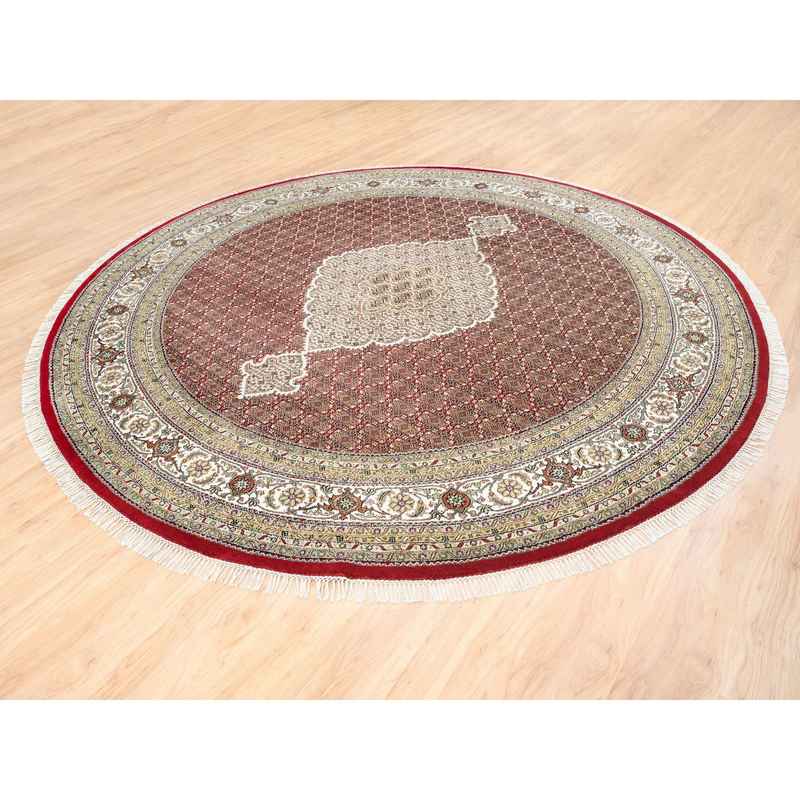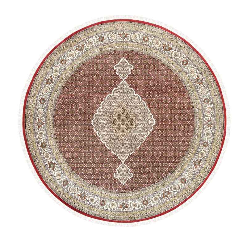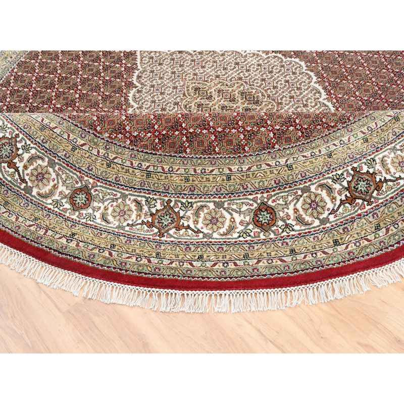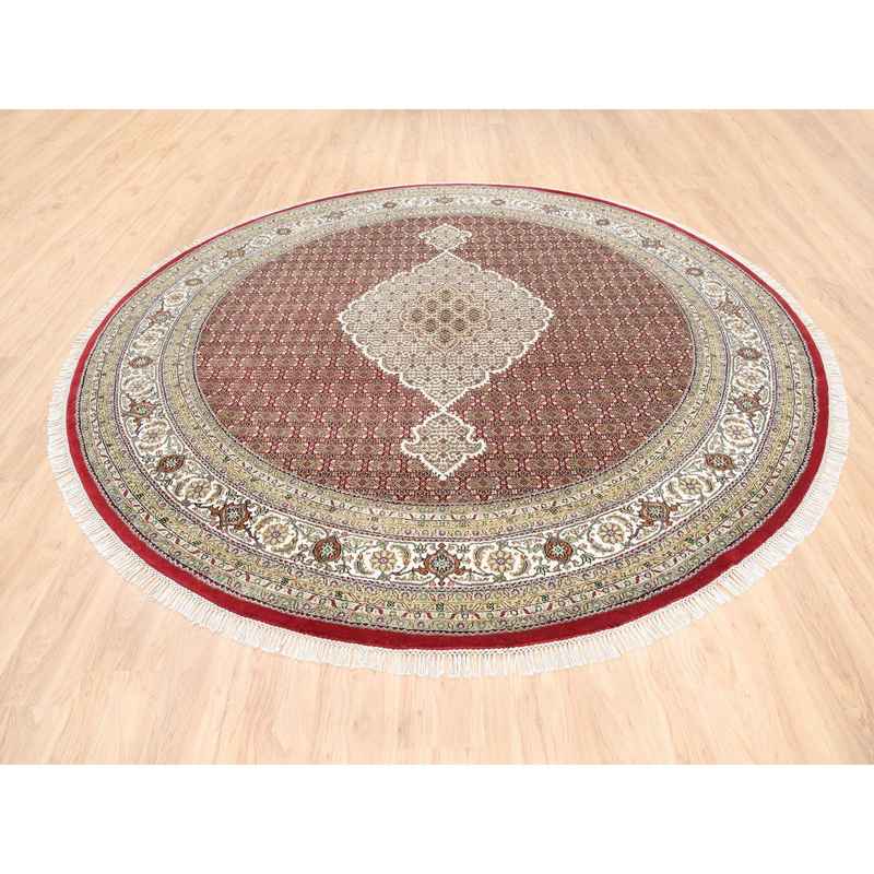 9’10″x9’10” Hand Knotted Red Tabriz Mahi Fish Medallion Design Wool Oriental Round Rug Sh62633