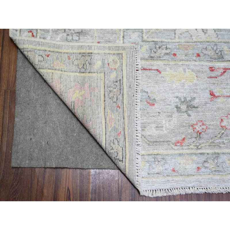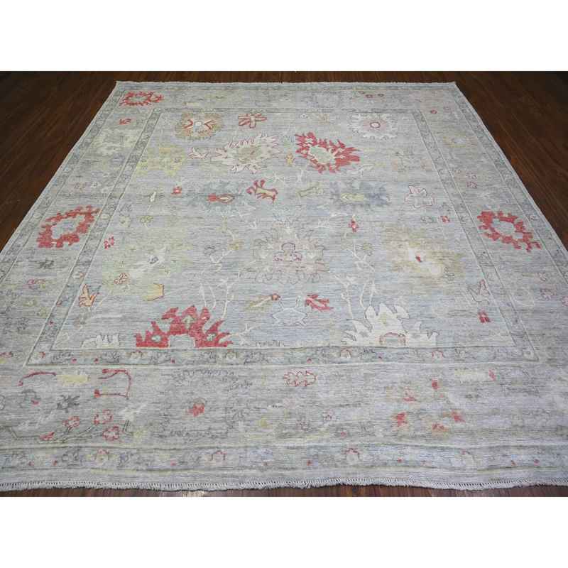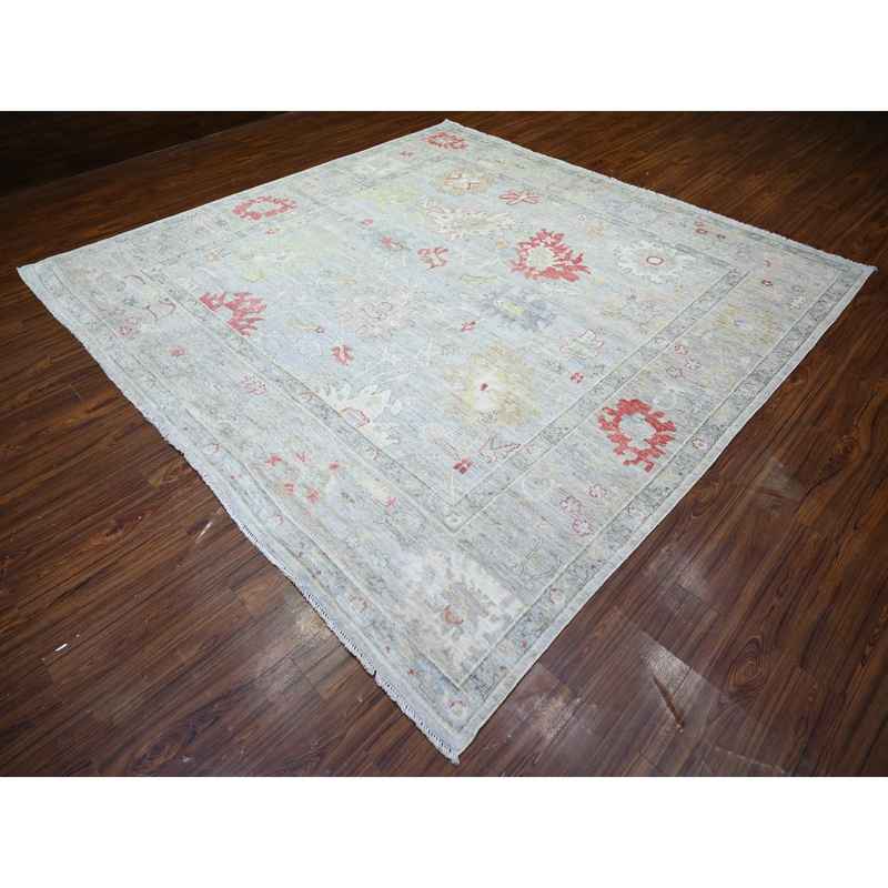 9’10″x9’10” Steel Blue, Hand Knotted 100% Wool, Natural Dyes Afghan Angora Oushak with Soft Colors, Square Oriental Rug Sh74172