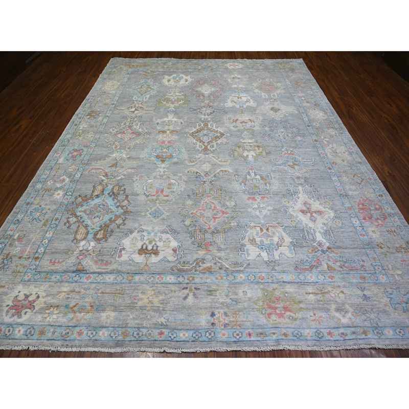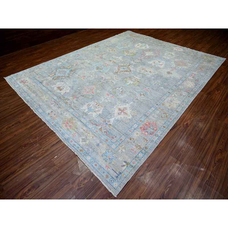 9’1″x11’9″ Cloud Gray, Hand Knotted Pure Wool, Natural Dyes Afghan Angora Oushak with Soft Colors, Oriental Rug Sh73893