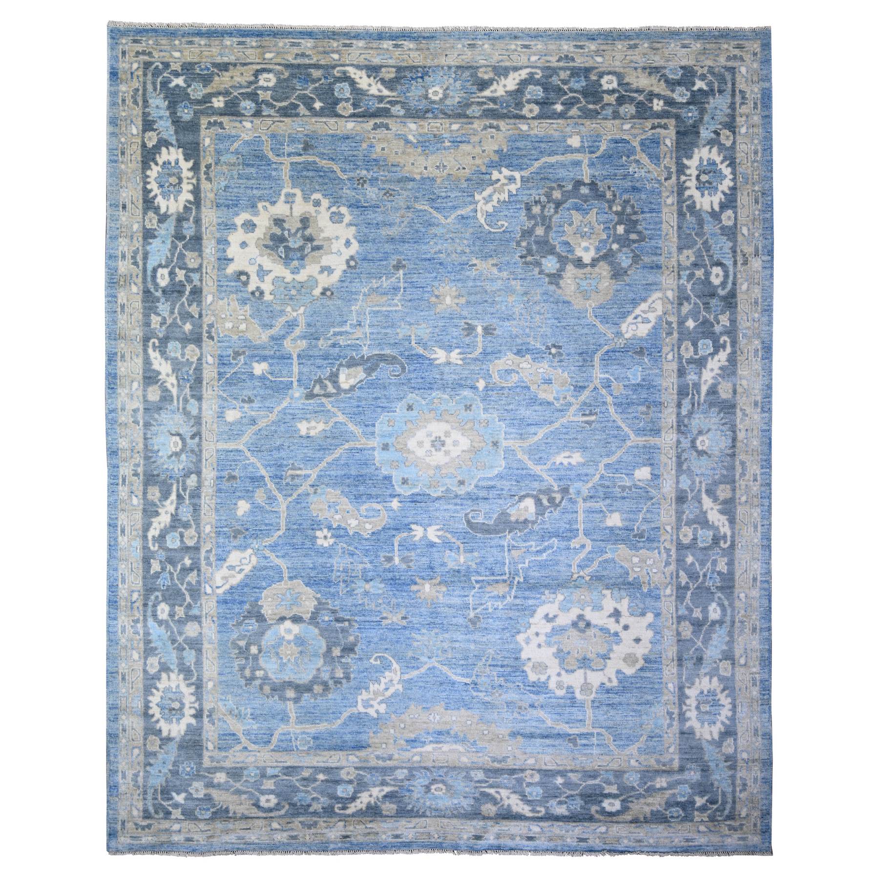 9’1″x11’9″ Little Boy Blue with Independence Blue, High Grade Wool, Hand Knotted, Afghan Angora Oushak, Natural Dyes, Oriental Rug Sh74373
