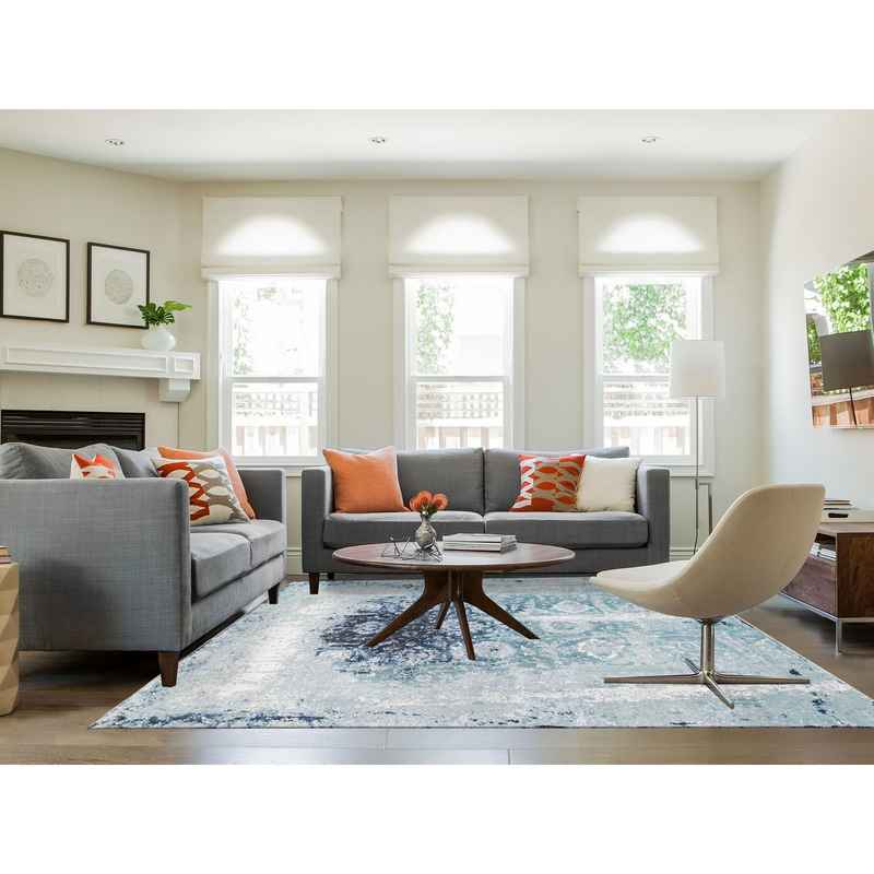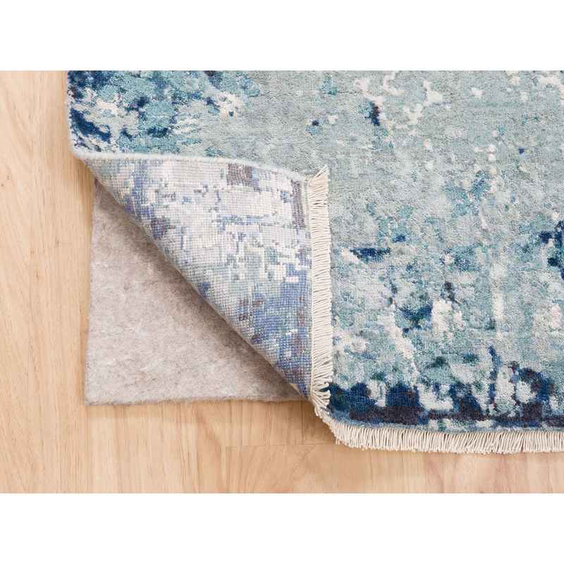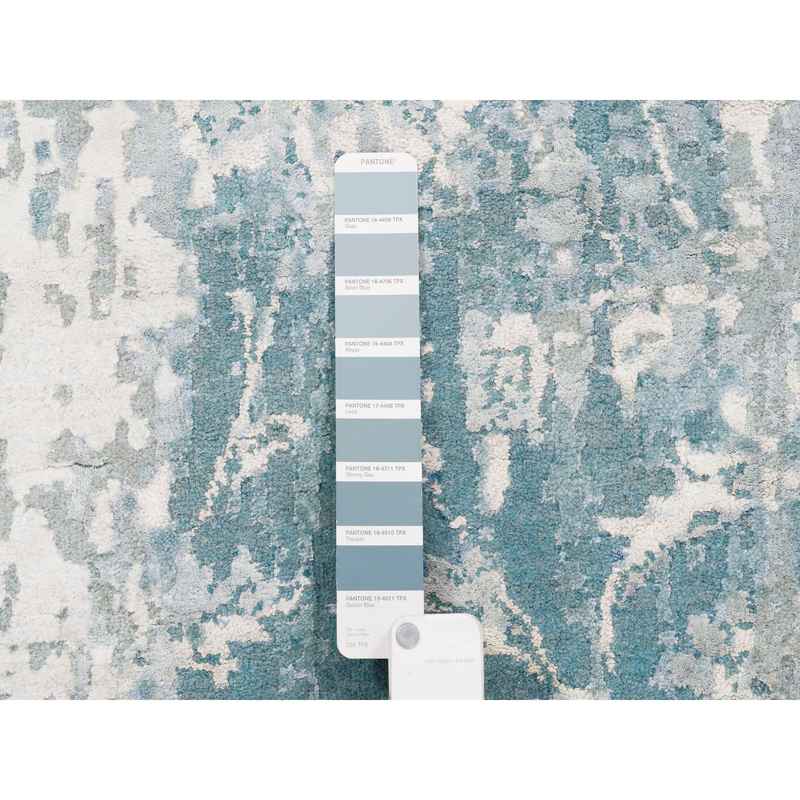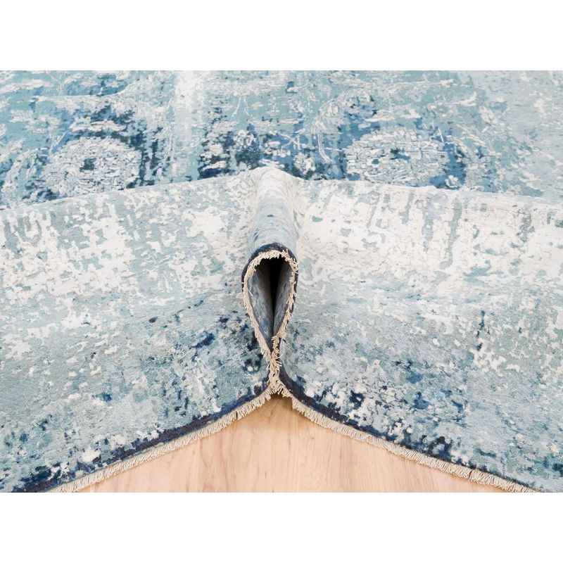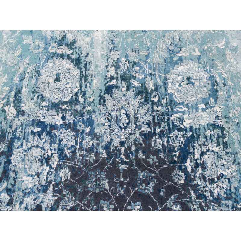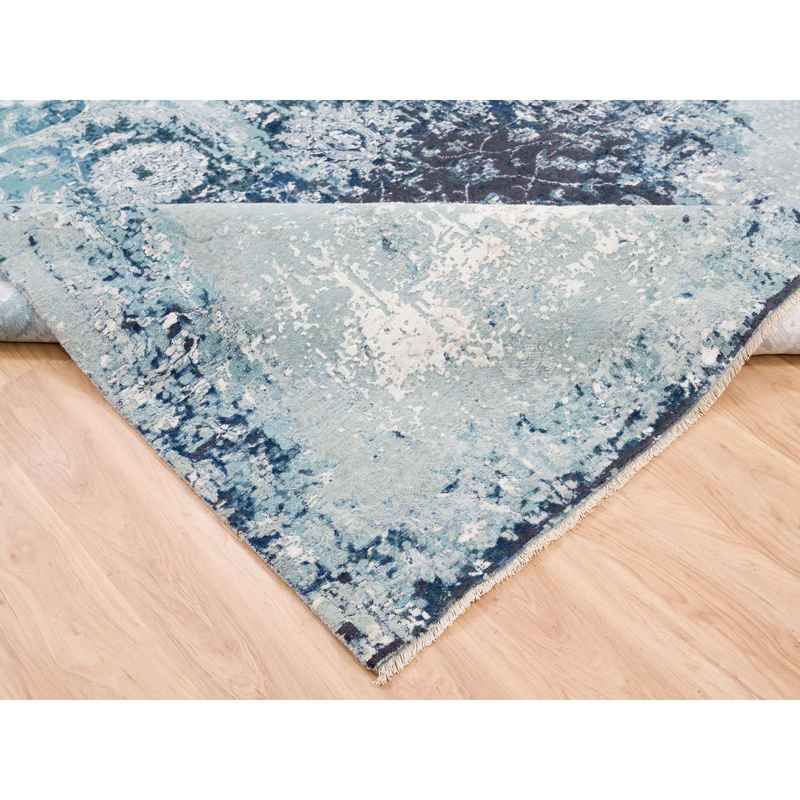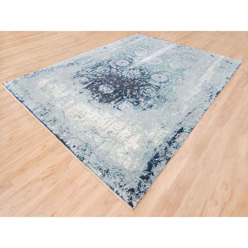 9’1″x11’9″ Wool and Silk Blue-Teal Persian Tabriz Broken Design Hand Knotted Oriental Rug Sh62840