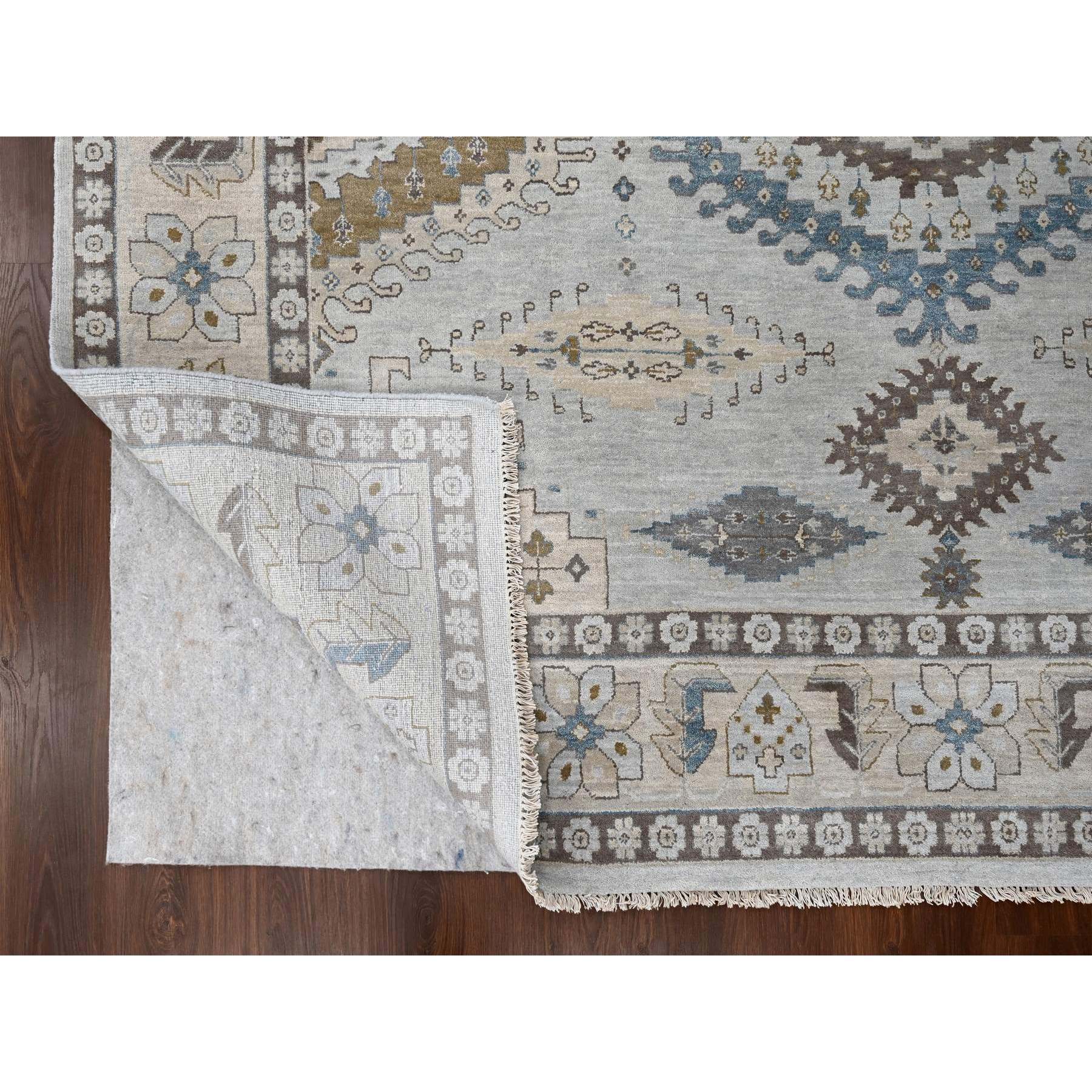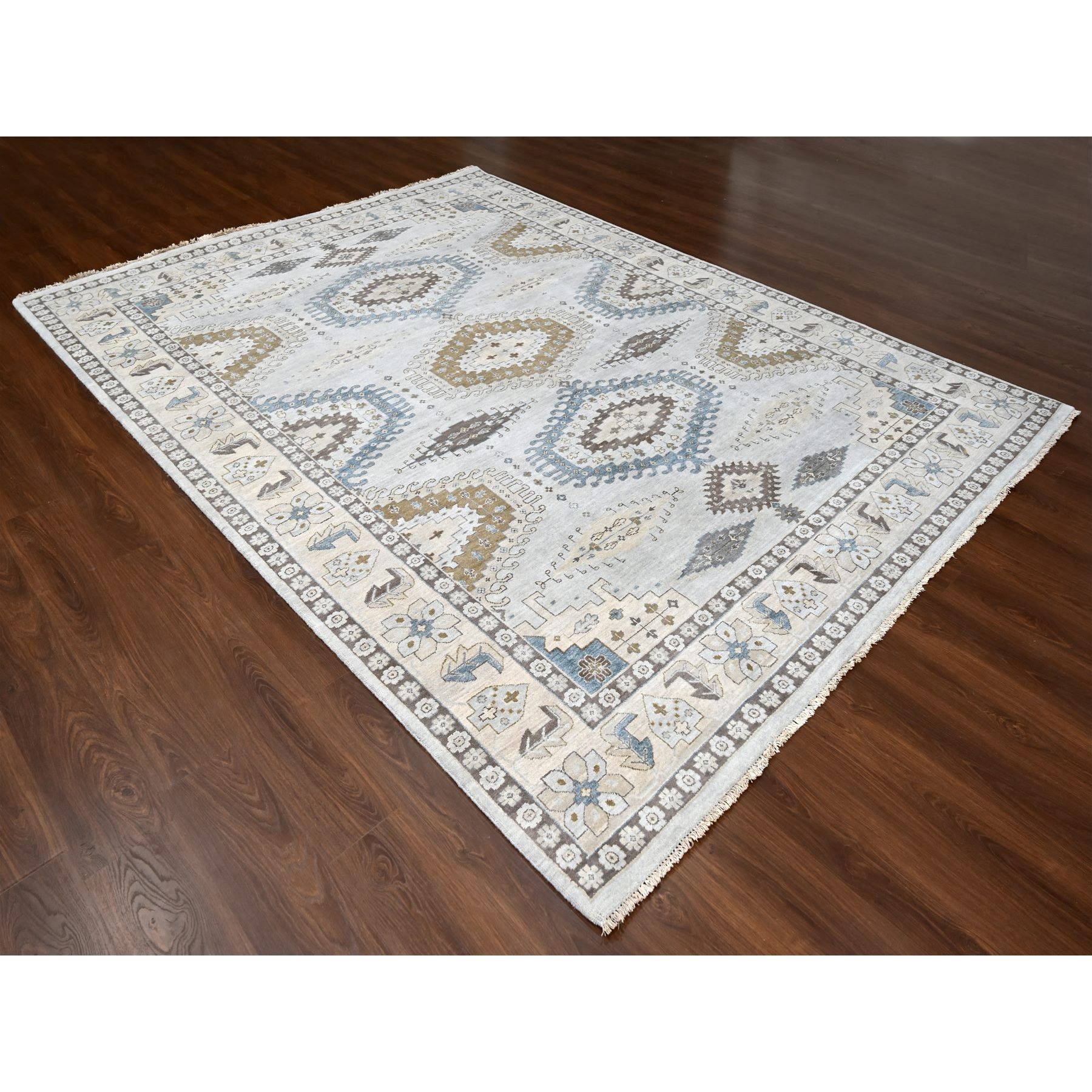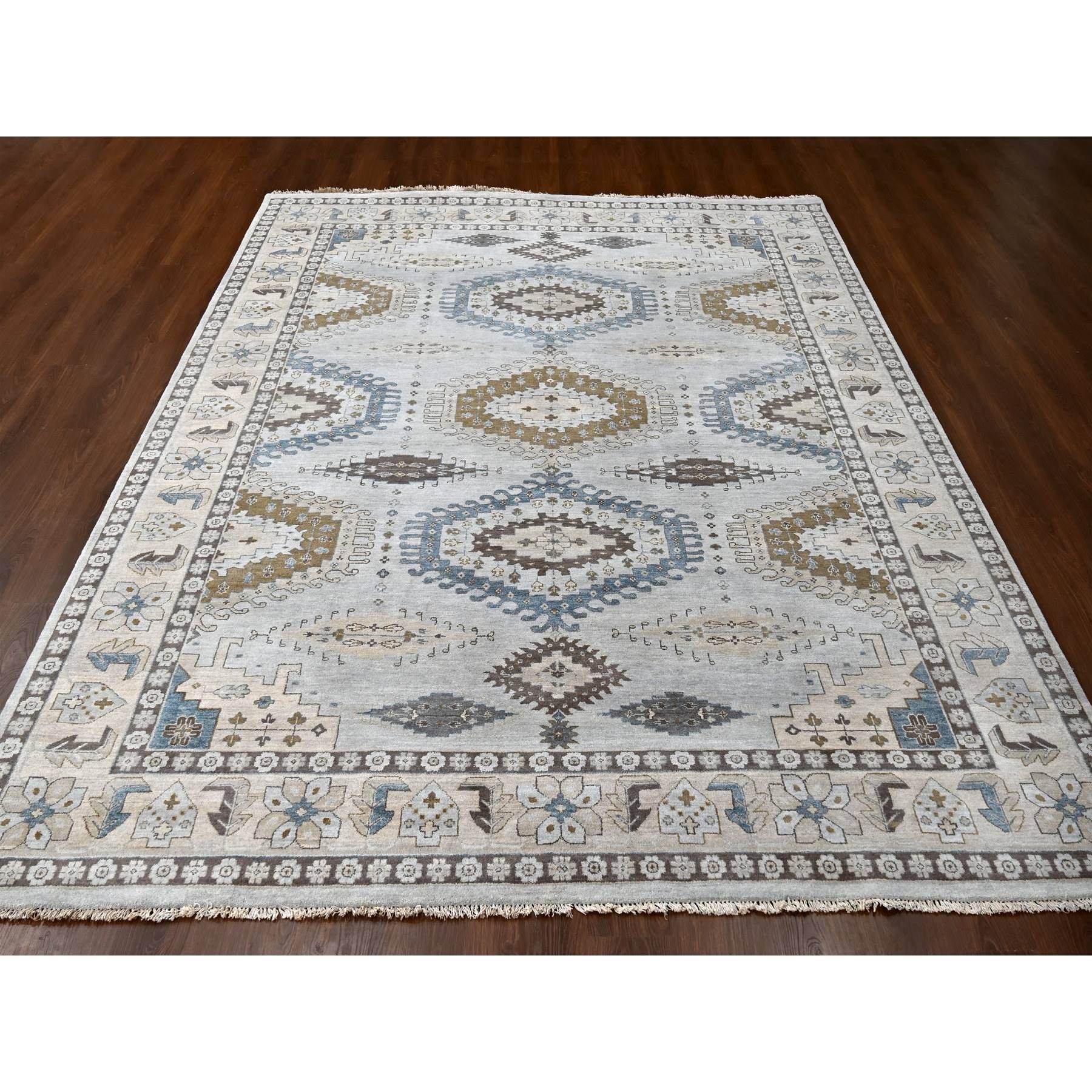 9’1″x12′ Chrome Gray, Hand Knotted, Soft and Velvety Wool, Persian Village Influence and Geometrical Medallions, Densely Woven, Oriental Rug Sh84760