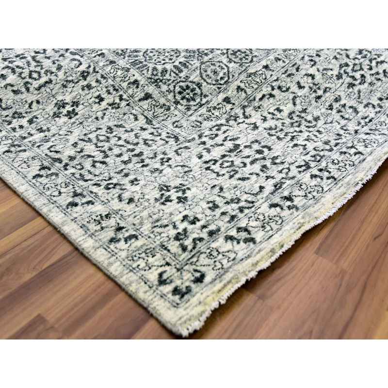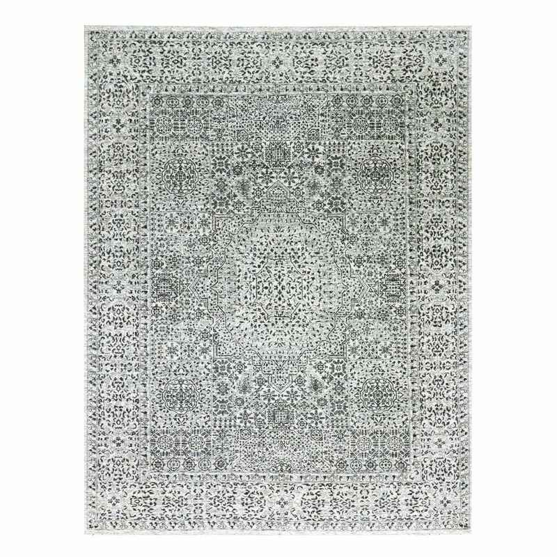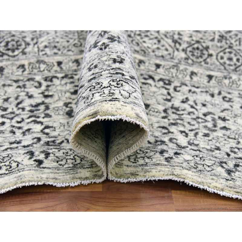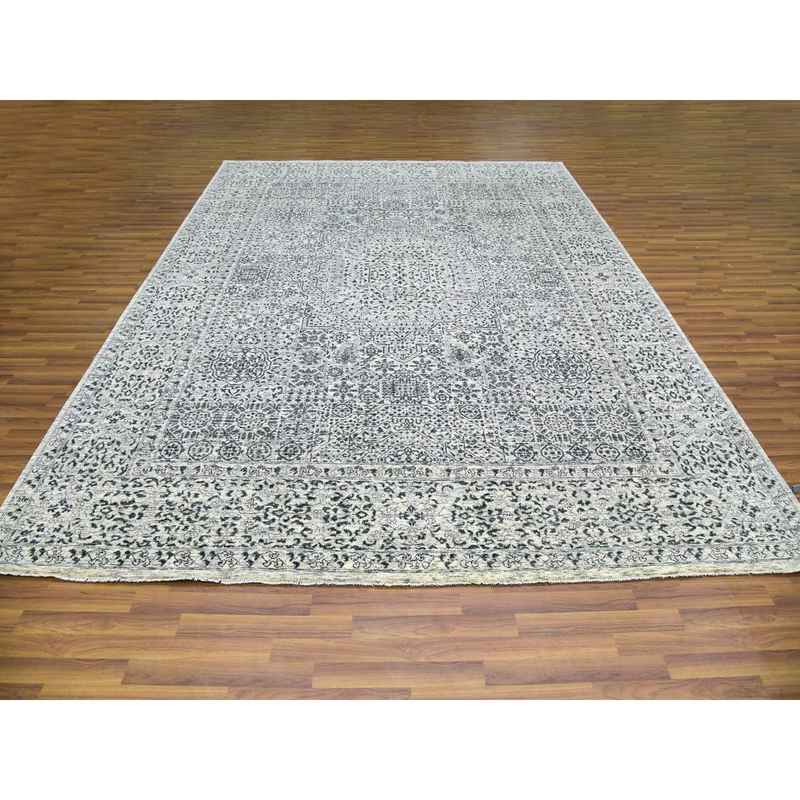 9’1″x12′ Ghost White, Hand Knotted, Mamluk Dynasty, Tone on Tone Design, Undyed 100% Wool, Oriental Rug Sh79469