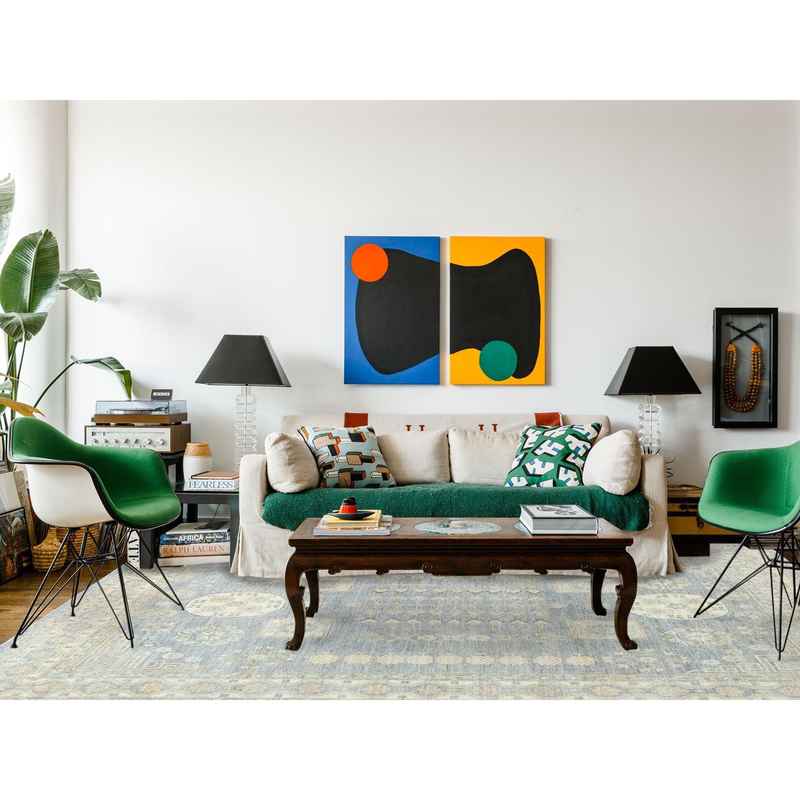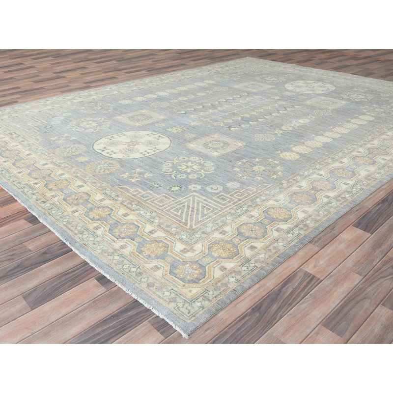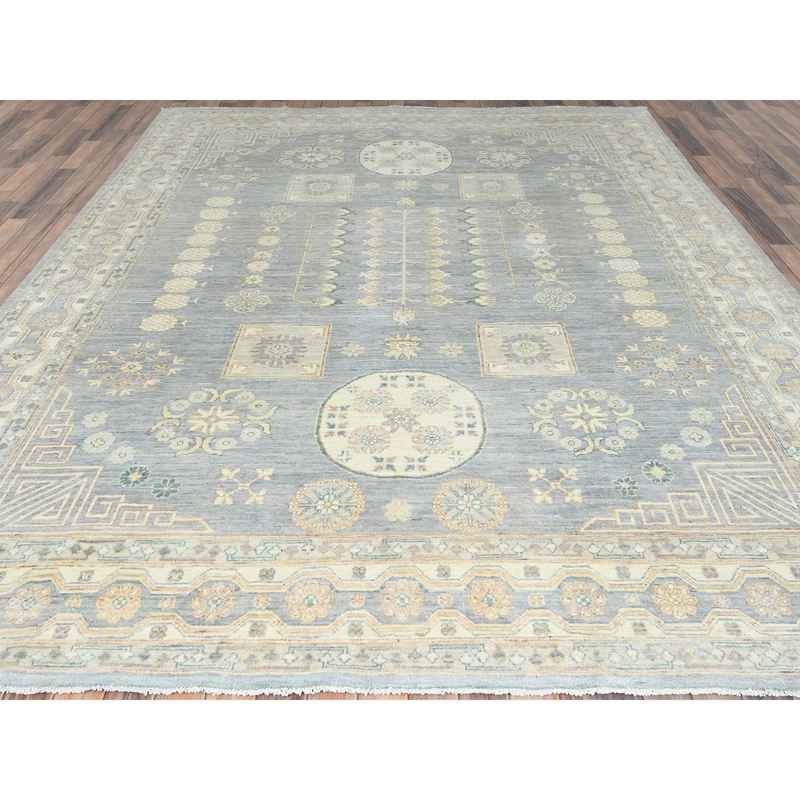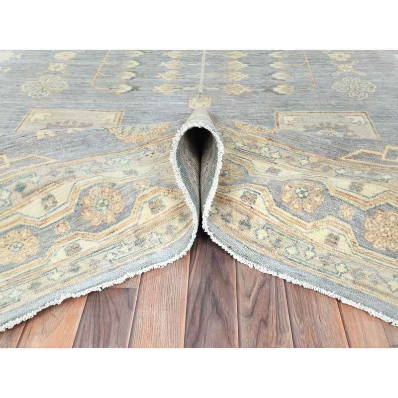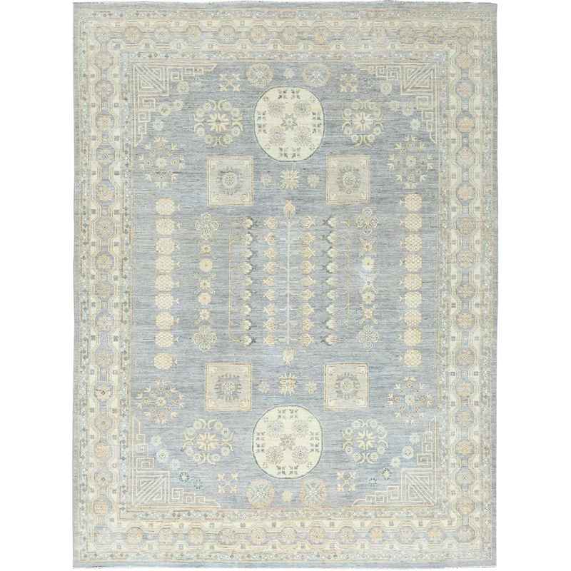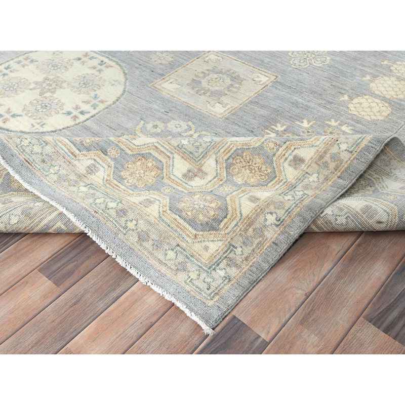 9’1″x12′ Misty Gray, Afghan Peshawar with Khotan Design, Stone Washed, Soft Wool, Hand Knotted, Oriental Rug Sh82702