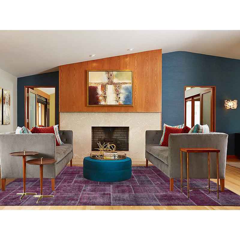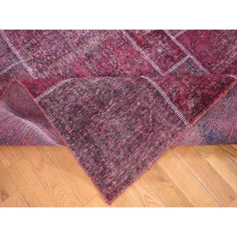 9’1″x12’10” Vermilion Red, Vintage Overdyed Persian Patchwork Design, Handmade Hand Knotted Pure Wool, Oriental Rug Sh80662