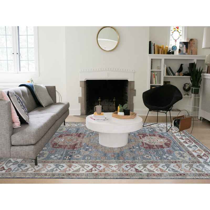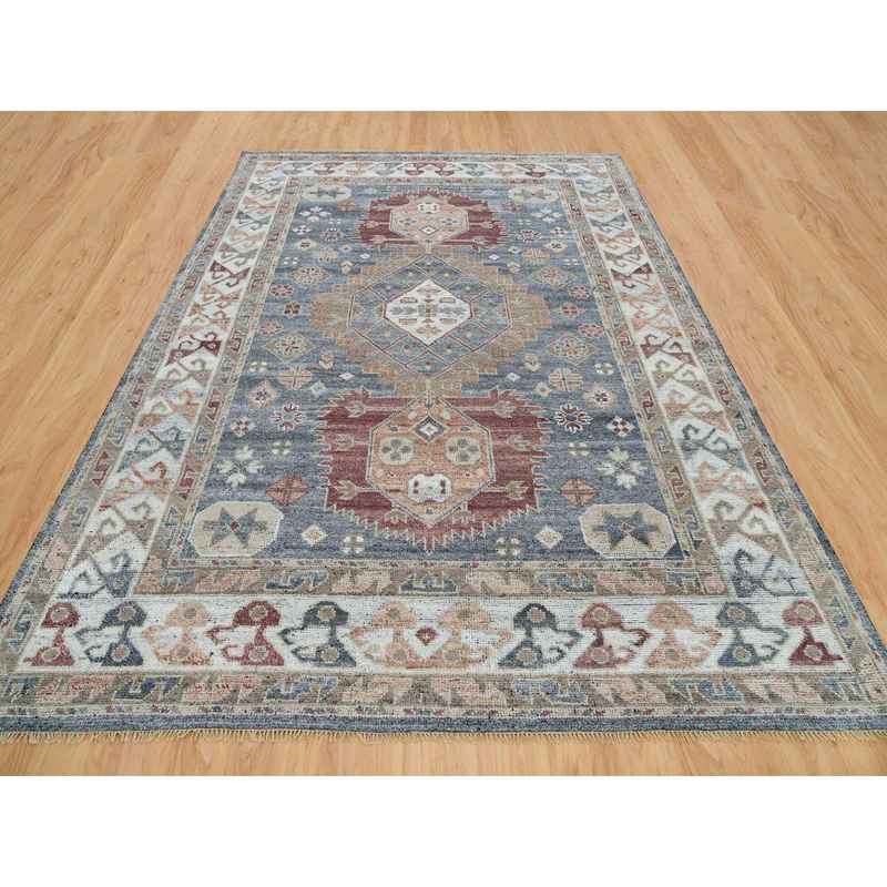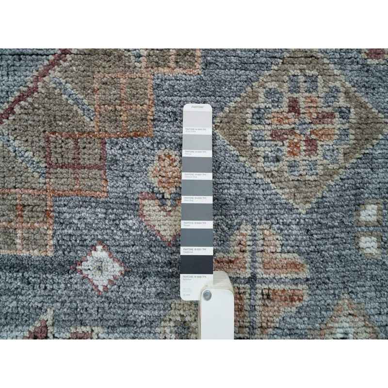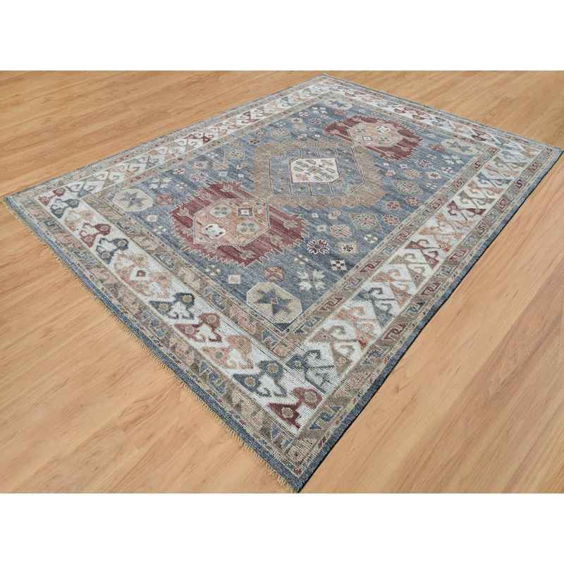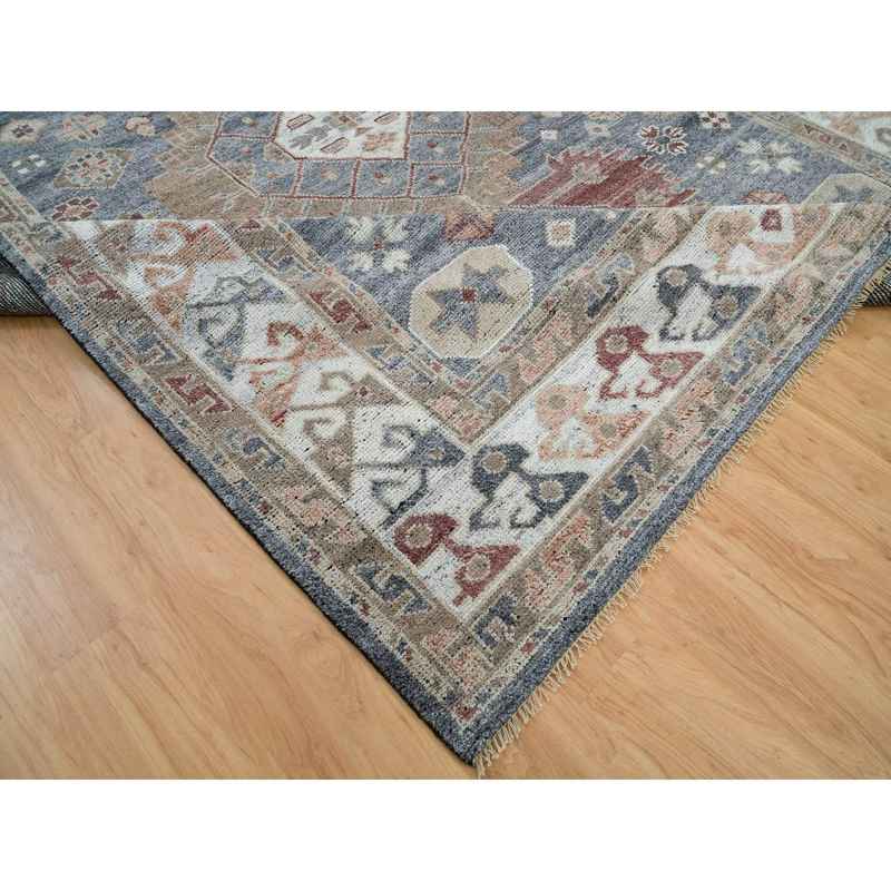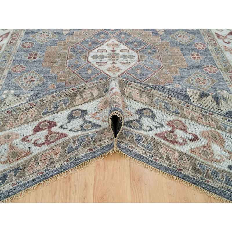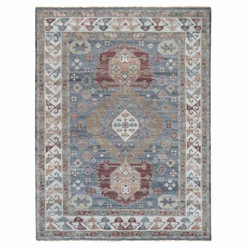 9’1″x12’2″ Oxford Gray, Heriz Revival with Today’s Colors, Geometric Anchored Medallions with Serrated Leaf Design, Hand Knotted, Pure Wool, Thick and Plush, Oriental Rug Sh65863