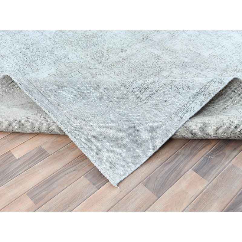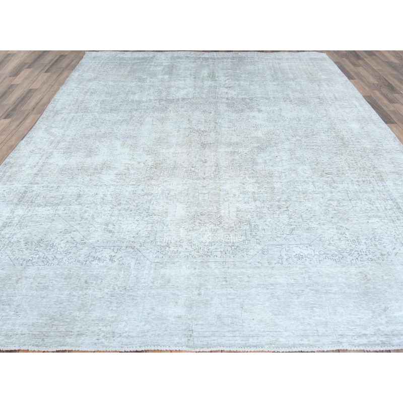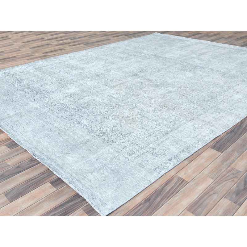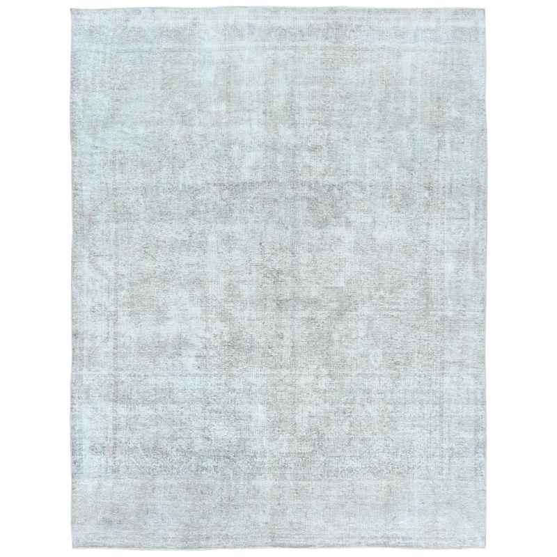 9’1″x12’3″ Light Gray, Vintage Persian Tabriz, Shaved Down Distressed Feel, Worn Wool Hand Knotted, Oriental Rug Sh82103