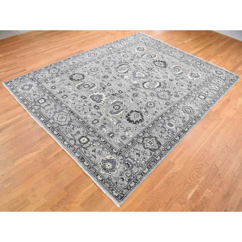 9’1″x12’3″ Silver Gray, Peshawar with Sultanabad All Over Design, Hand Knotted, Pure Wool Oriental Rug Sh80452