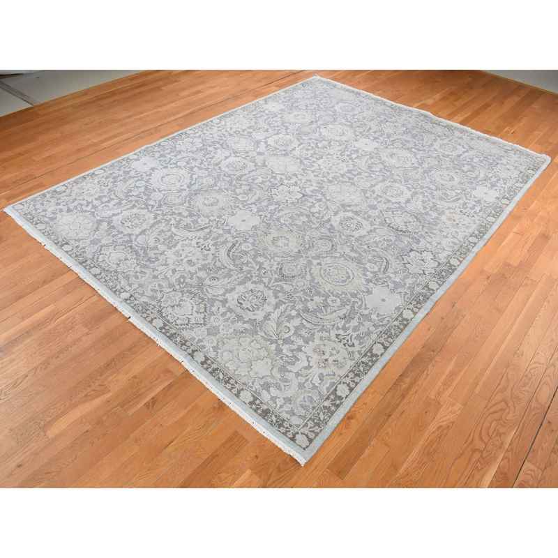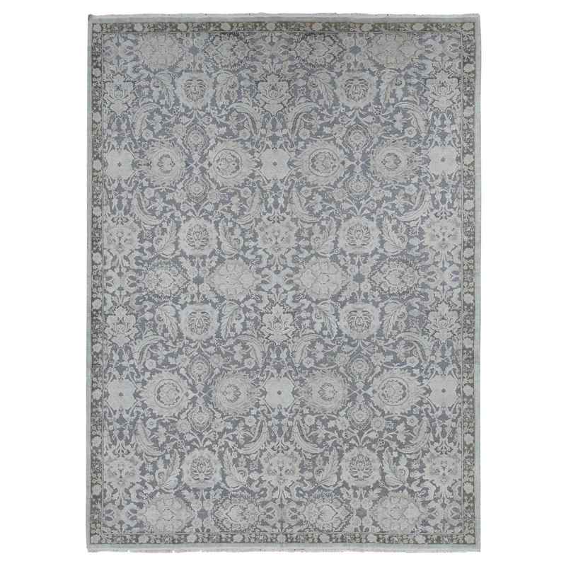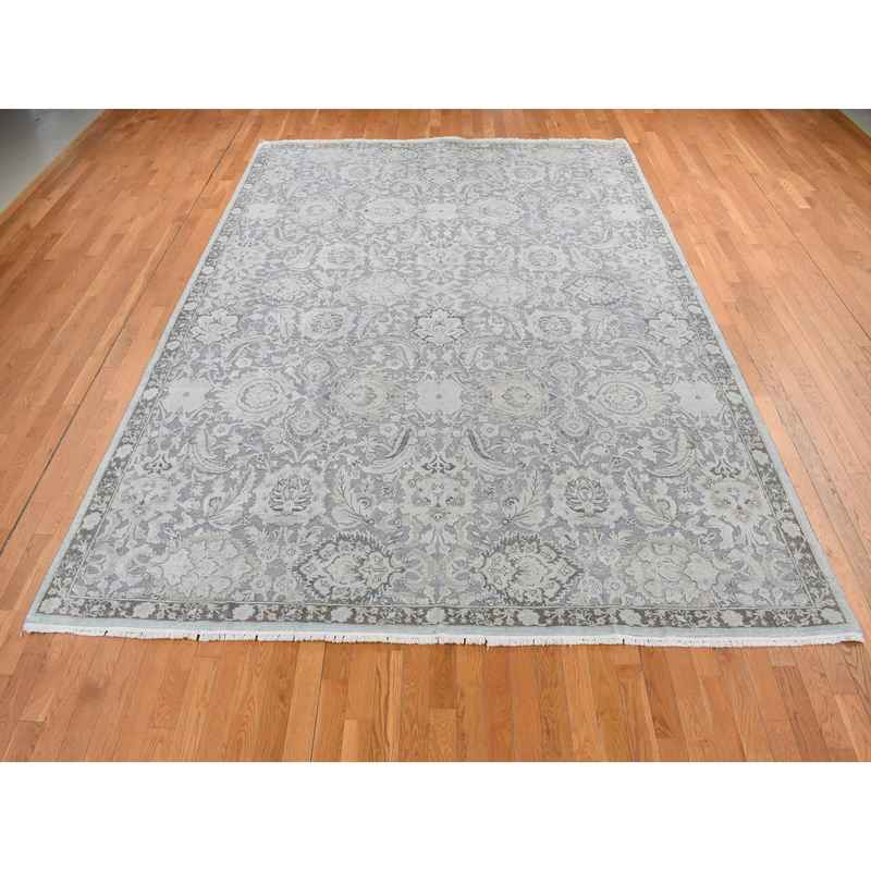9’1″x12’5″ Charcoal Gray, Oushak Design, Hand Knotted, Flat Weave with Raised Silk, Oriental Rug Sh87093