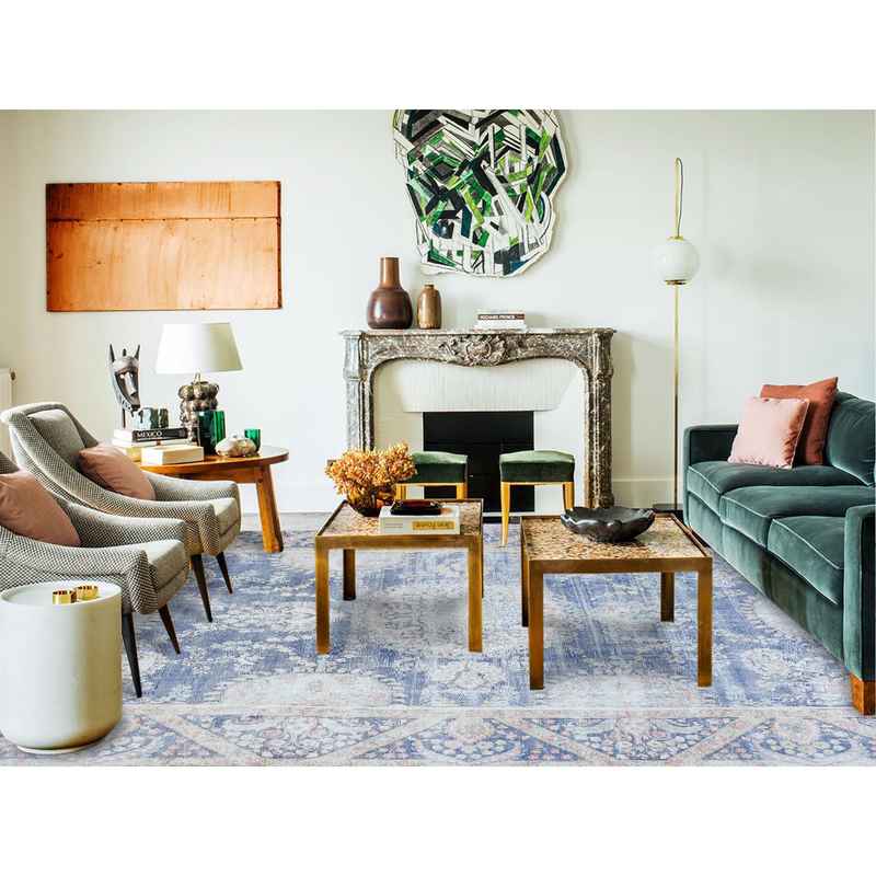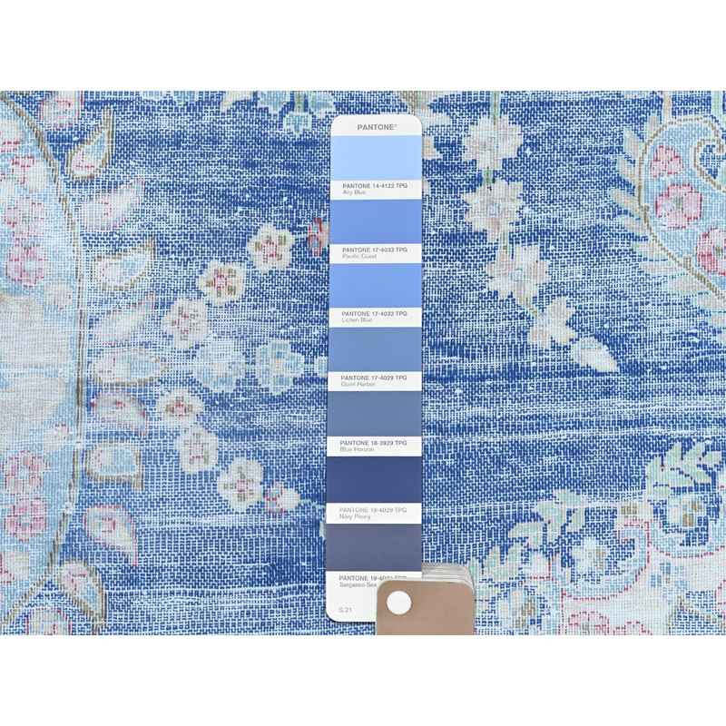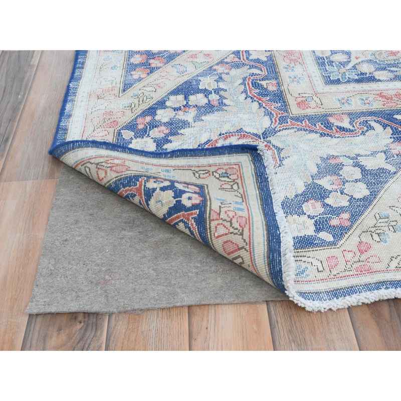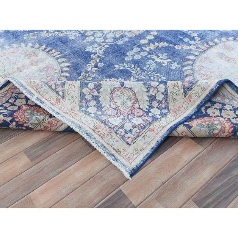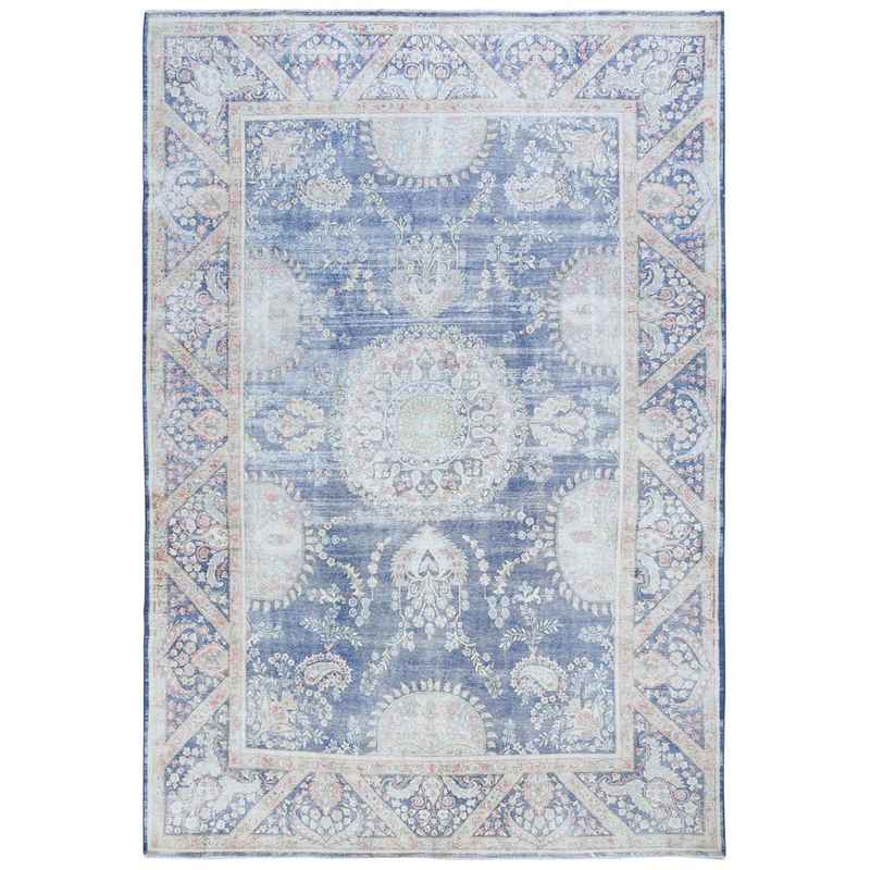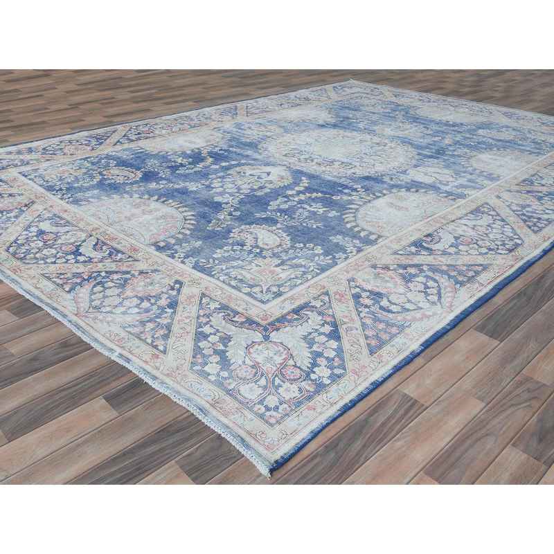 9’1″x13″ Navy Blue Semi Antique Persian Kerman Hand Knotted Sheared Low, Worn Wool, Shabby Chic Distressed Look Oriental Rug Sh81622