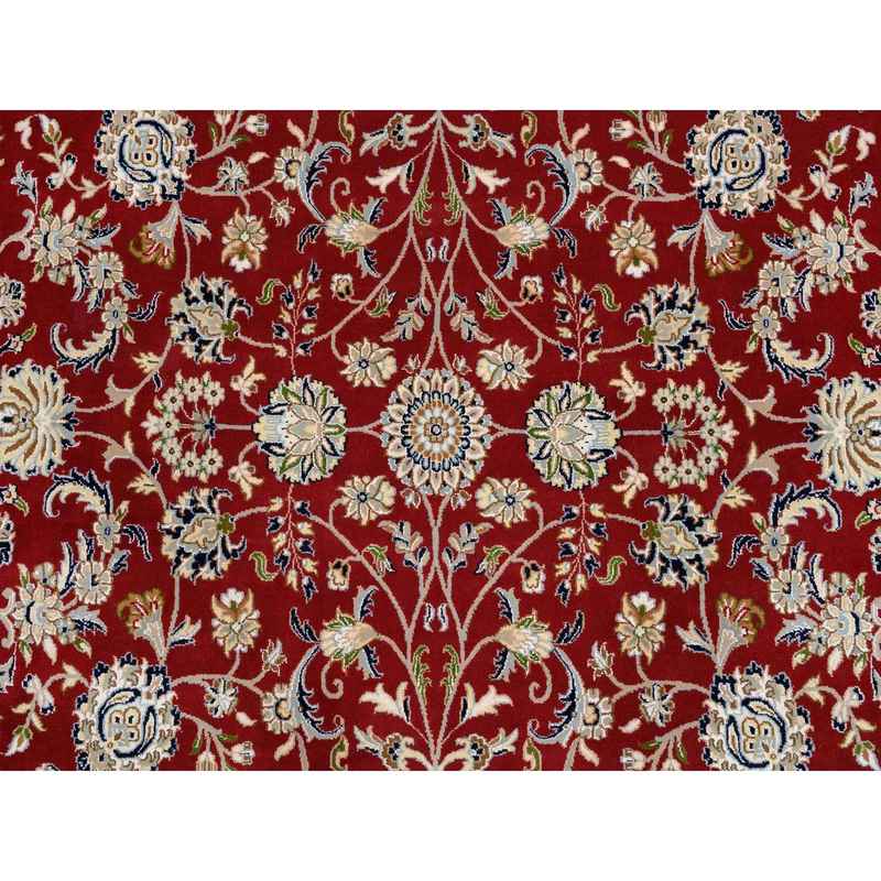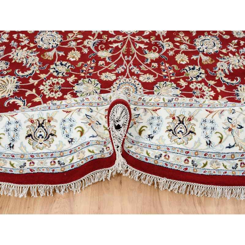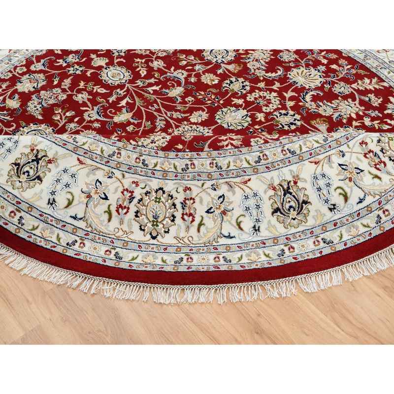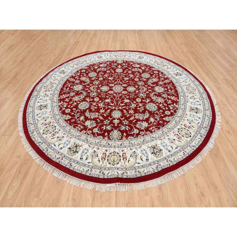 9’1″x9’1″ Cherry Red, Hand Knotted Nain with All Over Flower Design, 250 KPSI Wool, Round Oriental Rug Sh64728
