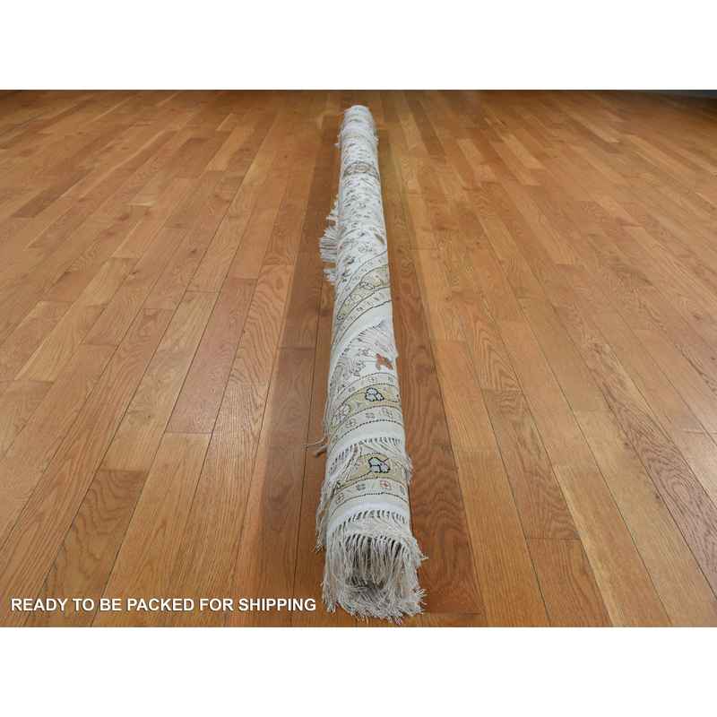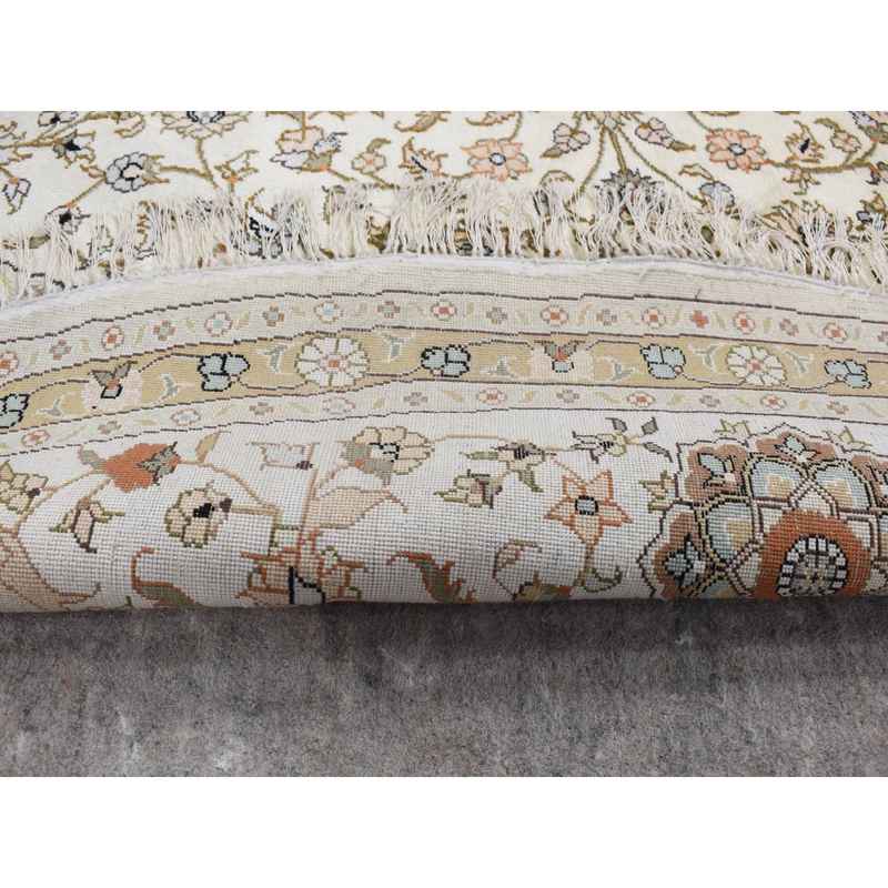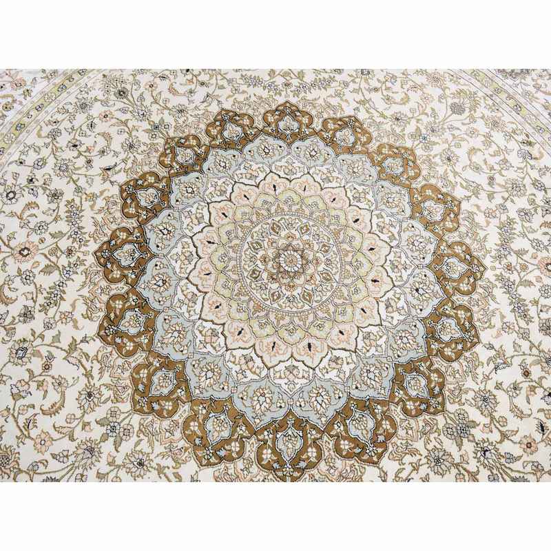 9’1″x9’1″ Ivory, Silken, Tabriz Design, 300 KPSI, Hand Knotted, Round Oriental Rug Sh87755