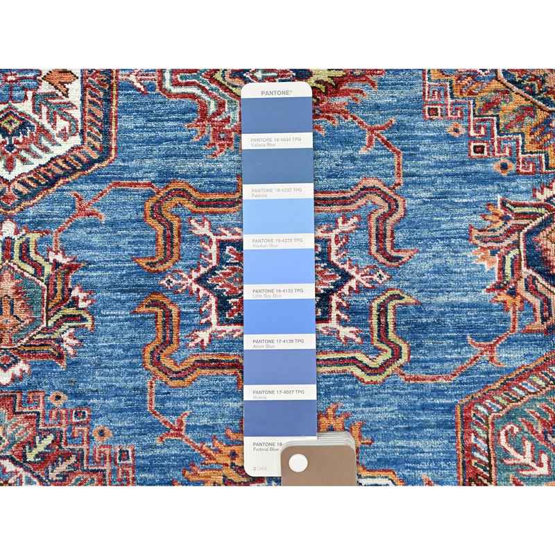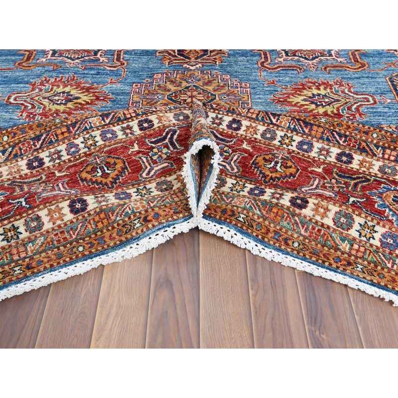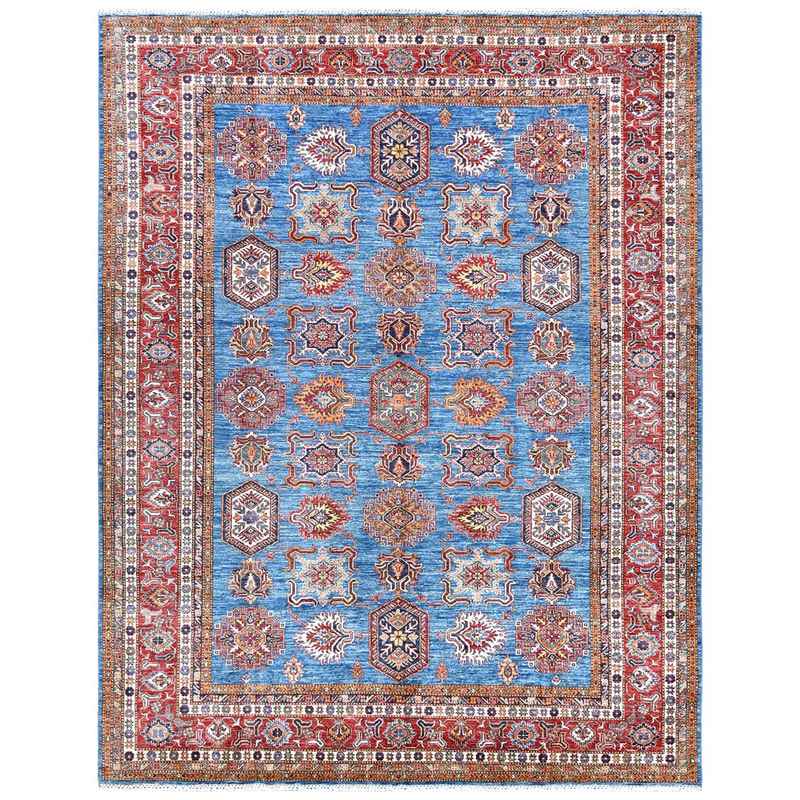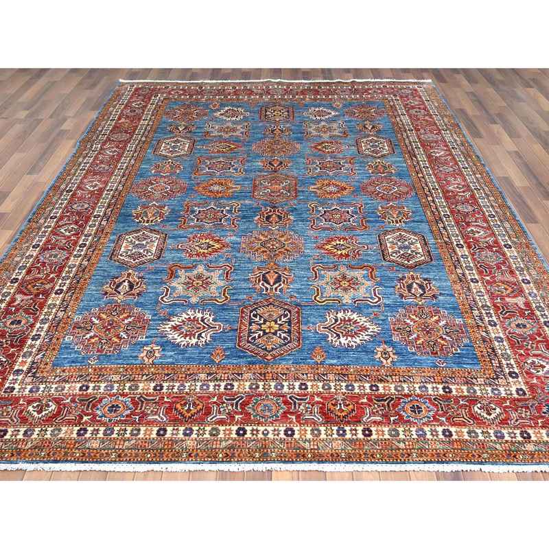 9’2″x11’10” Denim Blue Caucasian Design Super Kazak Soft Organic Wool Hand Knotted Oriental Rug Sh61147