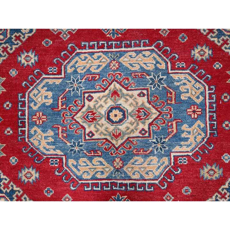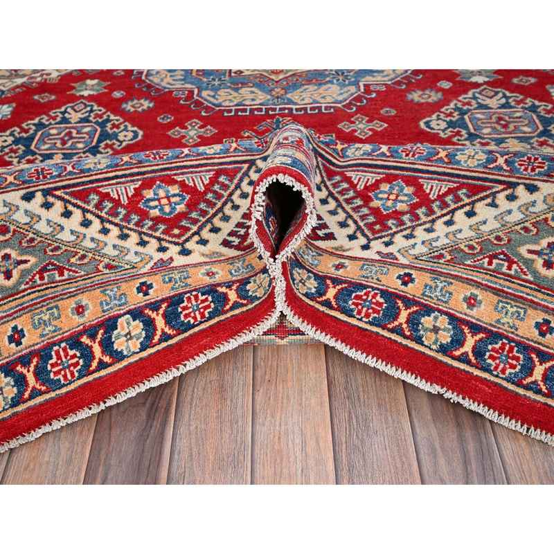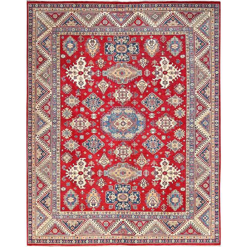 9’2″x11’6″ Valiant Poppy Red With Opulence White, Extra Soft Wool, Hand Knotted, Natural Dyes, Denser Weave Kazak with All Over Tribal Motifs, Oriental Rug Sh86767