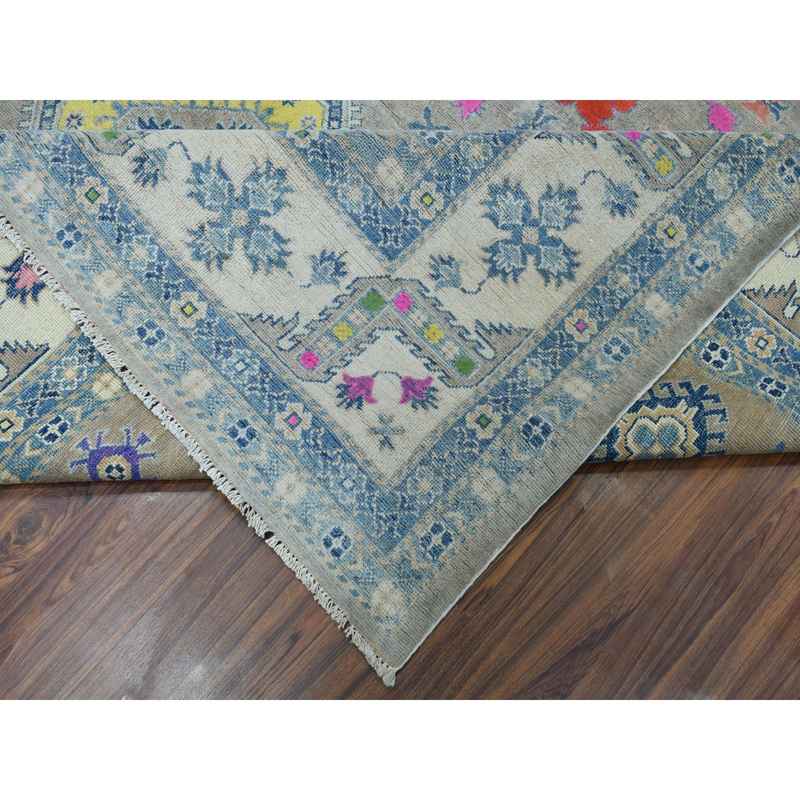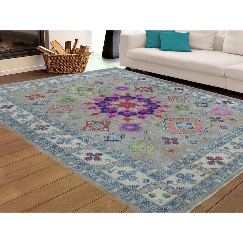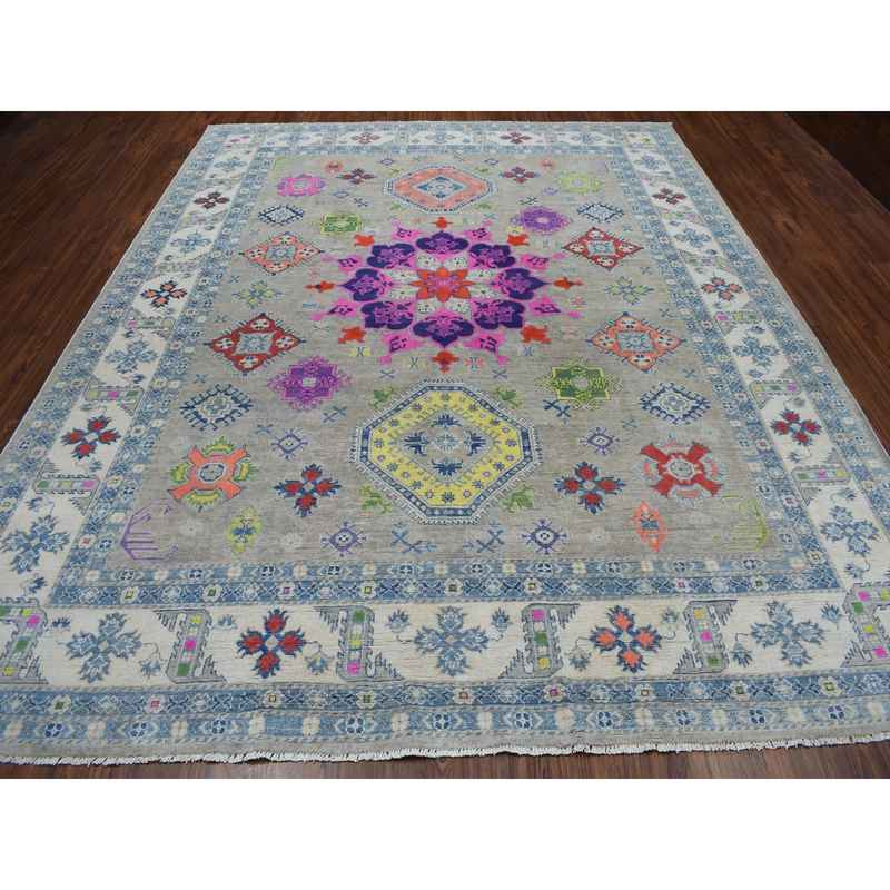 9’2″x11’7″ Colorful Fusion Kazak Geometric Design Pure Wool Hand-Knotted Oriental Rug Sh50673