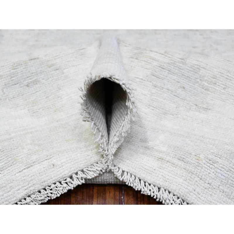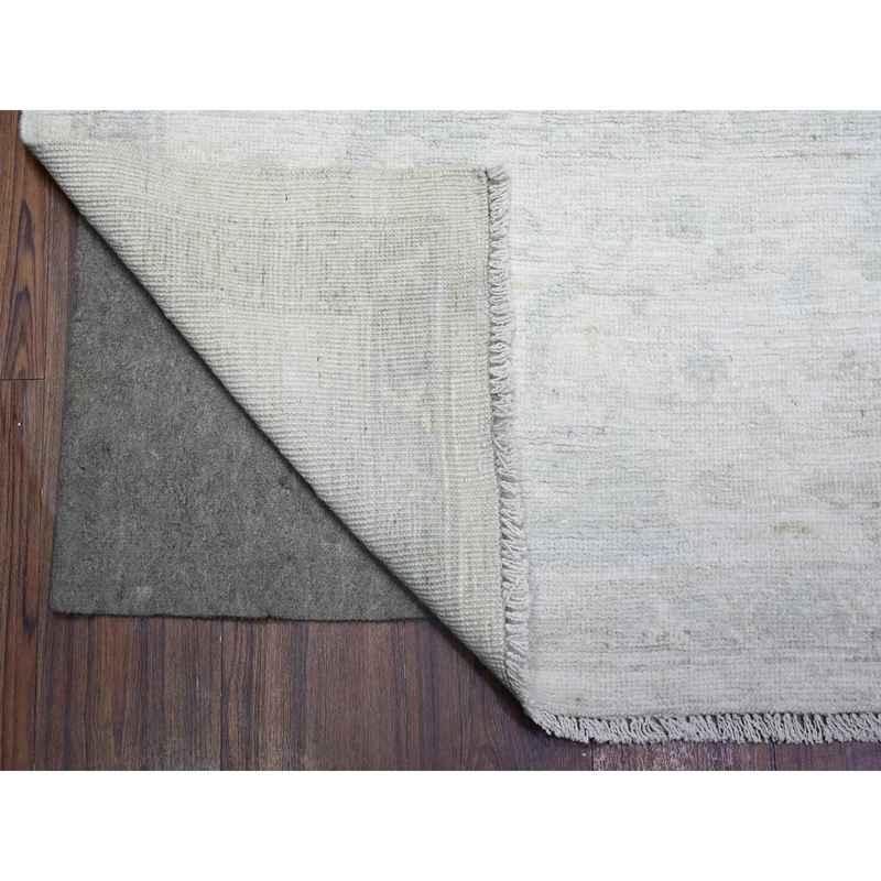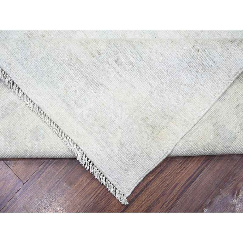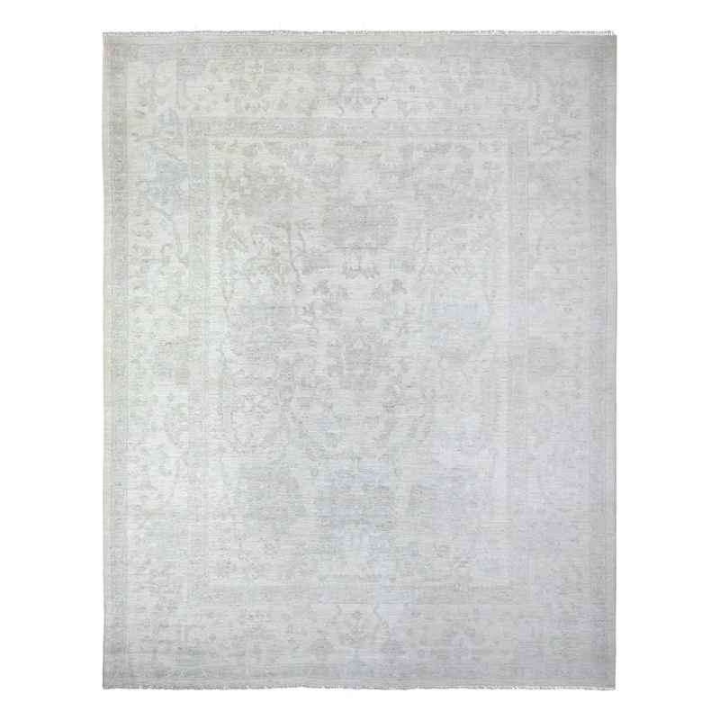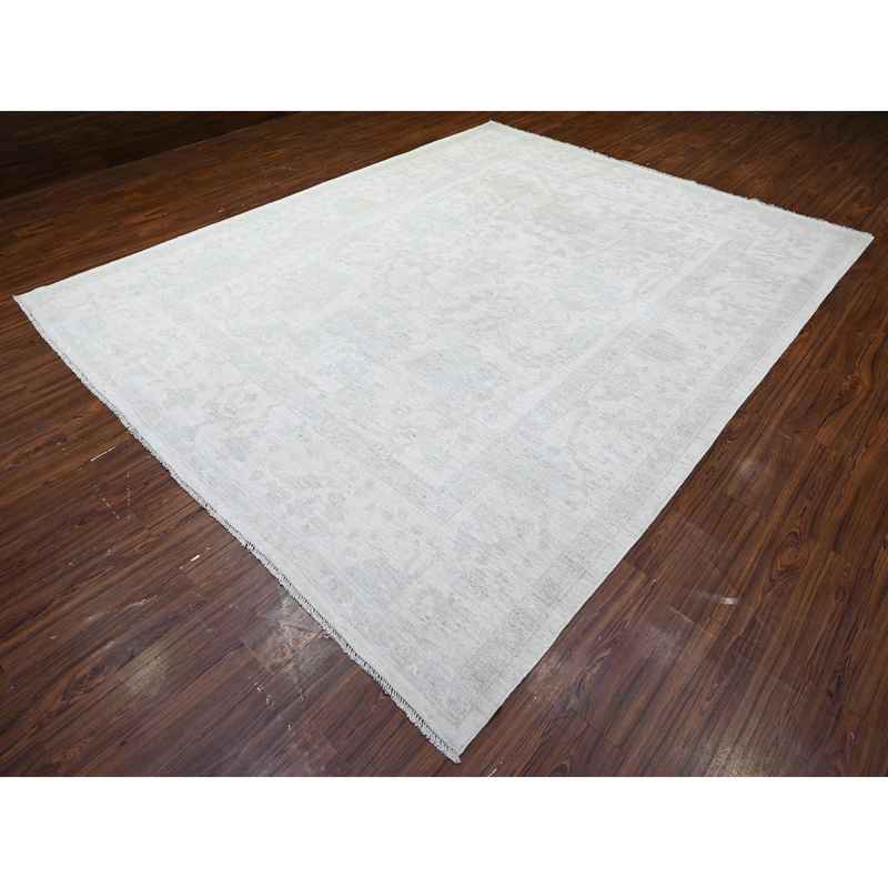 9’2″x11’7″ Vista White, Vegetable Dyes Afghan Angora Oushak All Over Pattern Faded Design, Hand Knotted, Vibrant Wool Oriental Rug Sh88124