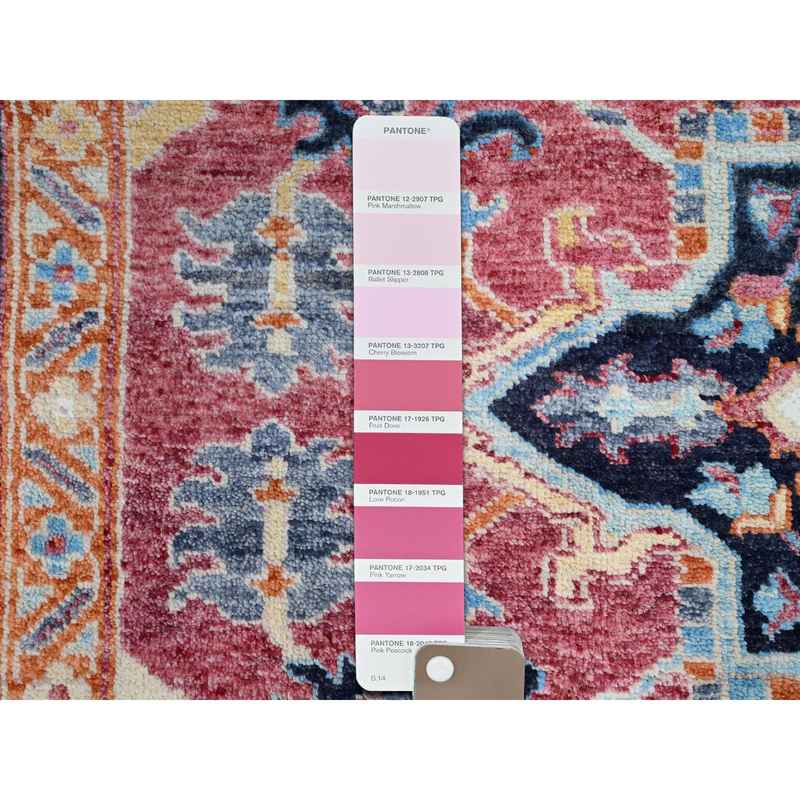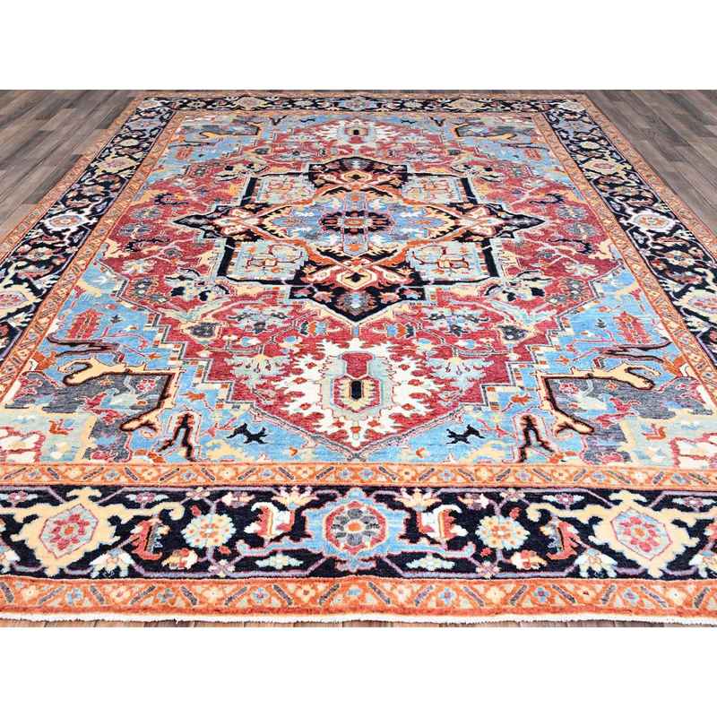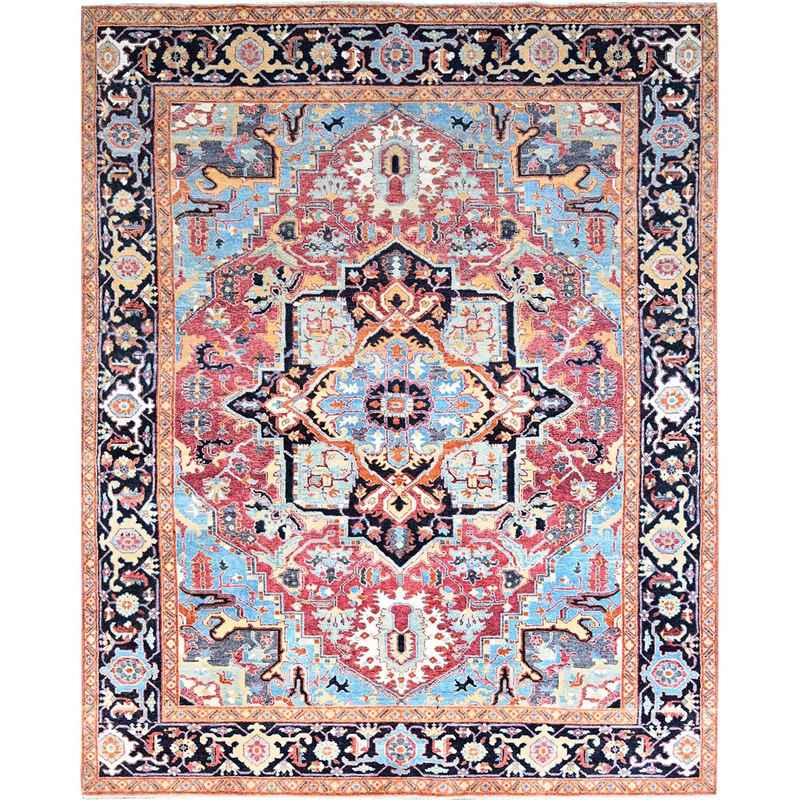 9’2″x11’8″ Yarrow Pink With Grotto Blue Border, Vegetable Dyes, Hand Knotted, Afghan Peshawar Serapi Heriz With Central Diamond Shaped Motif Design, Natural Wool Denser Weave Oriental Rug Sh86955