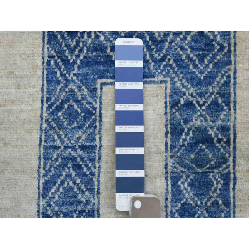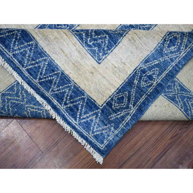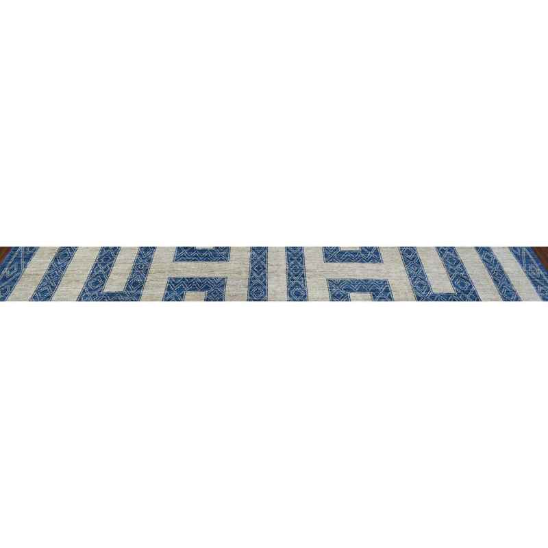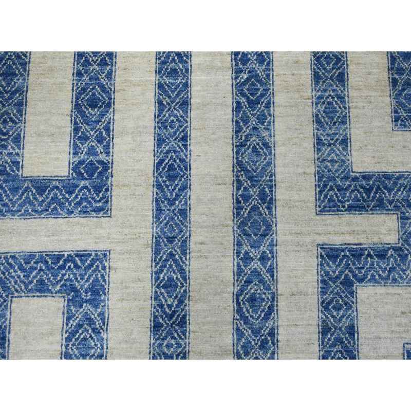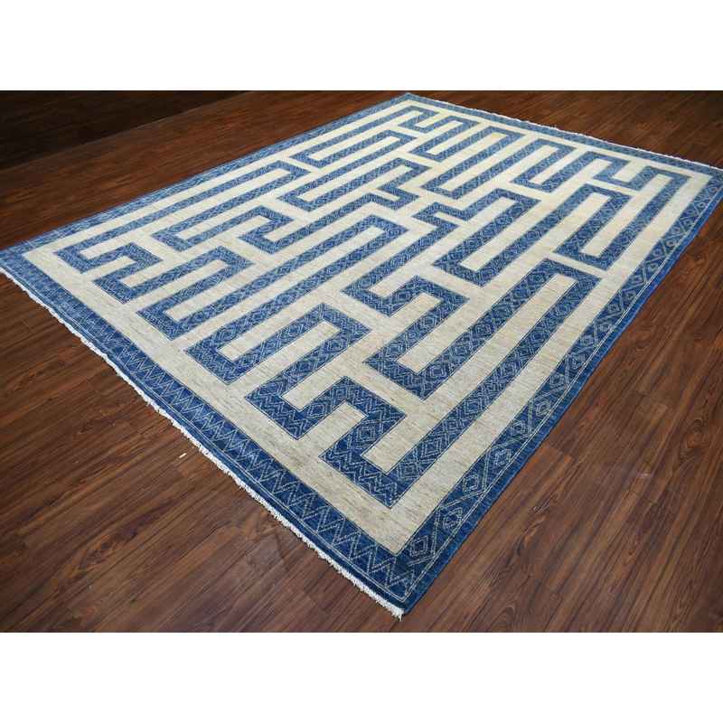 9’2″x11’9″ Denim Blue Maze Design with Berber Influence, Hand Knotted, Densely Woven, Soft and Shiny Wool Oriental Rug Sh71348
