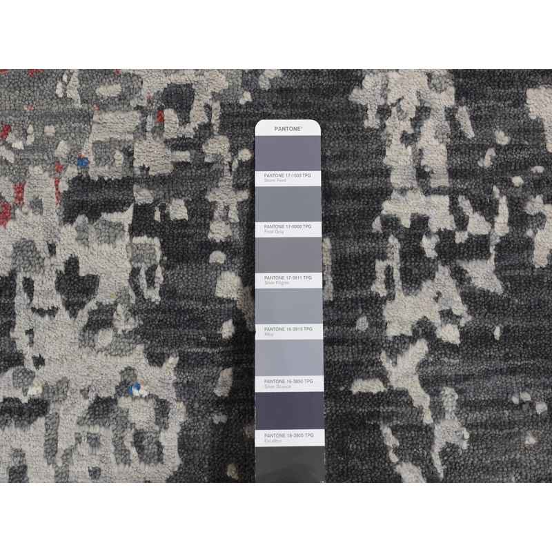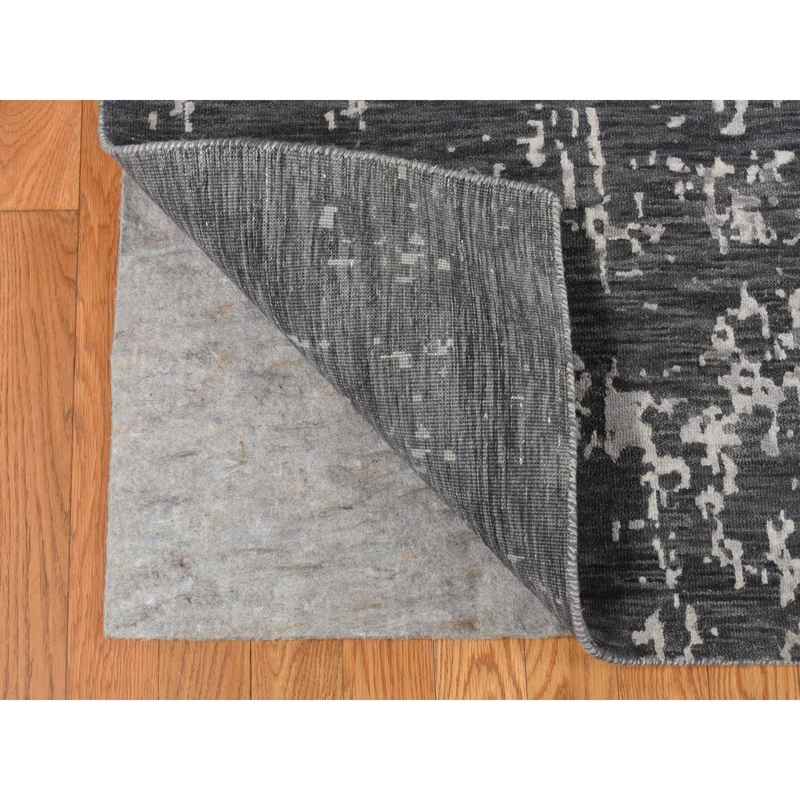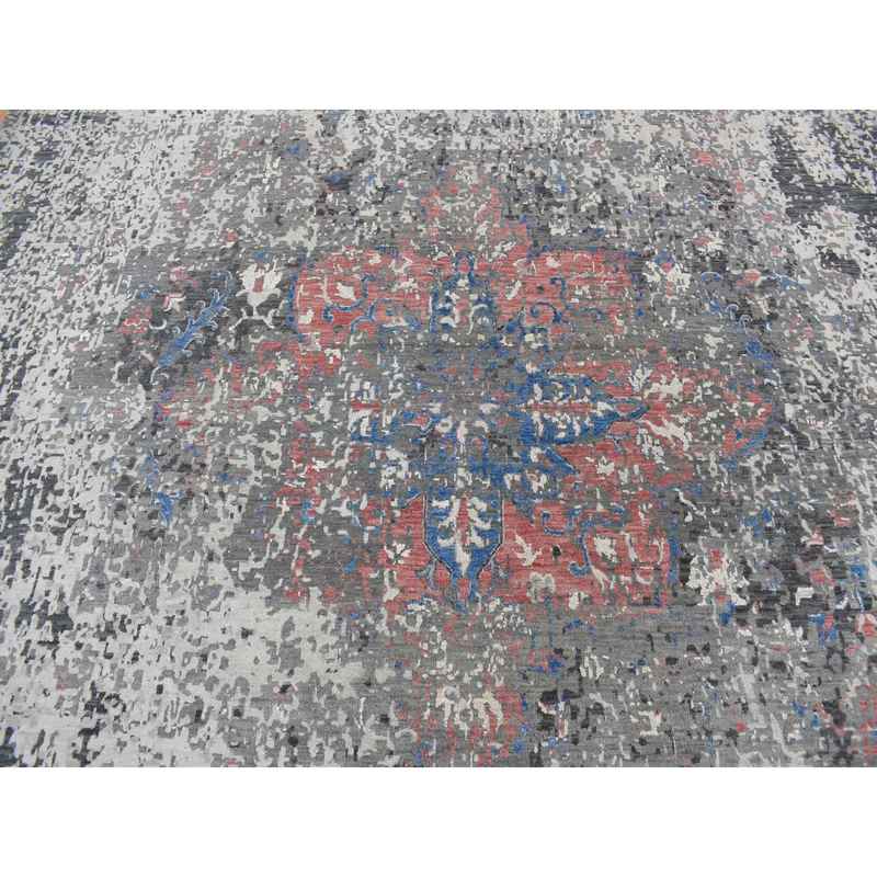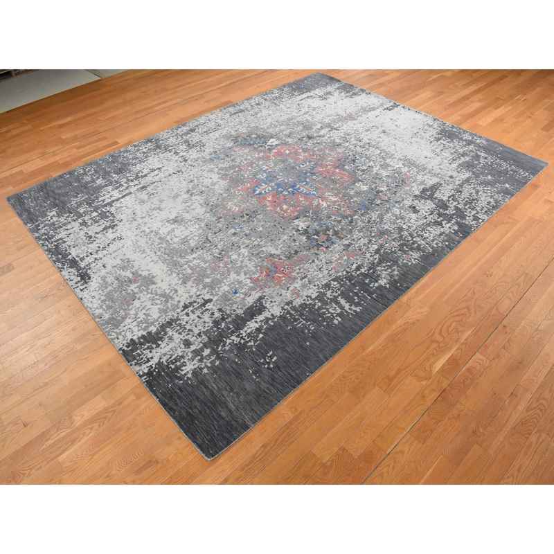 9’2″x12′ Arsenic Gray, Wool and Silk, Erased and Broken Persian Heriz Inspired Design, Hand Knotted, Oriental Rug Sh87131