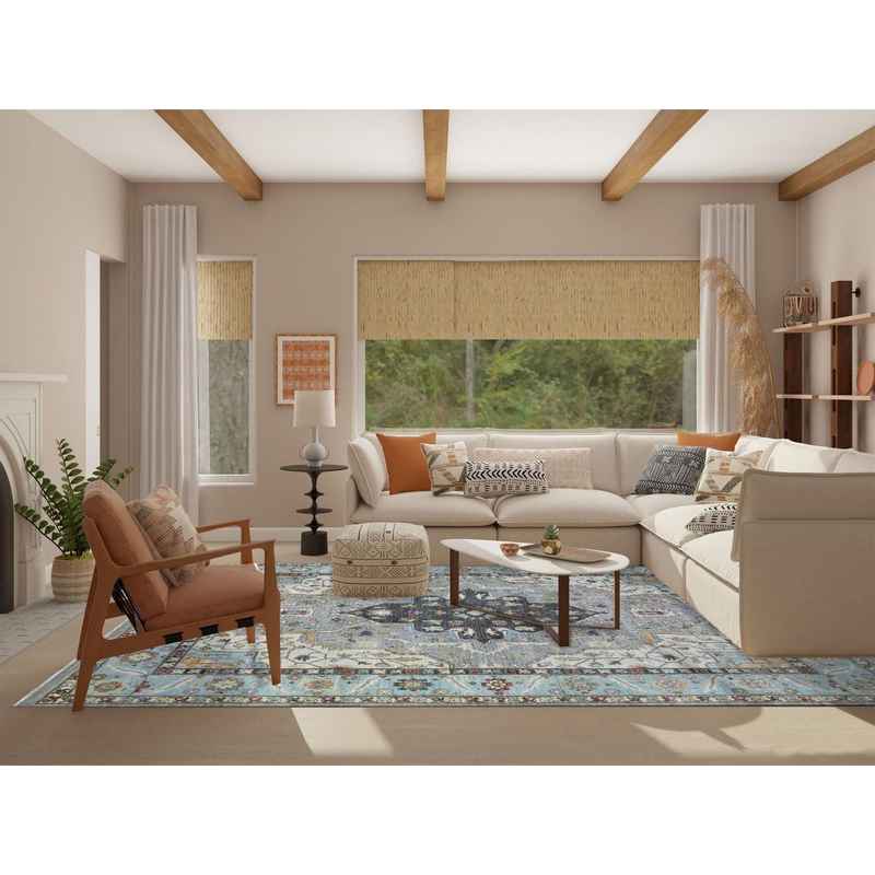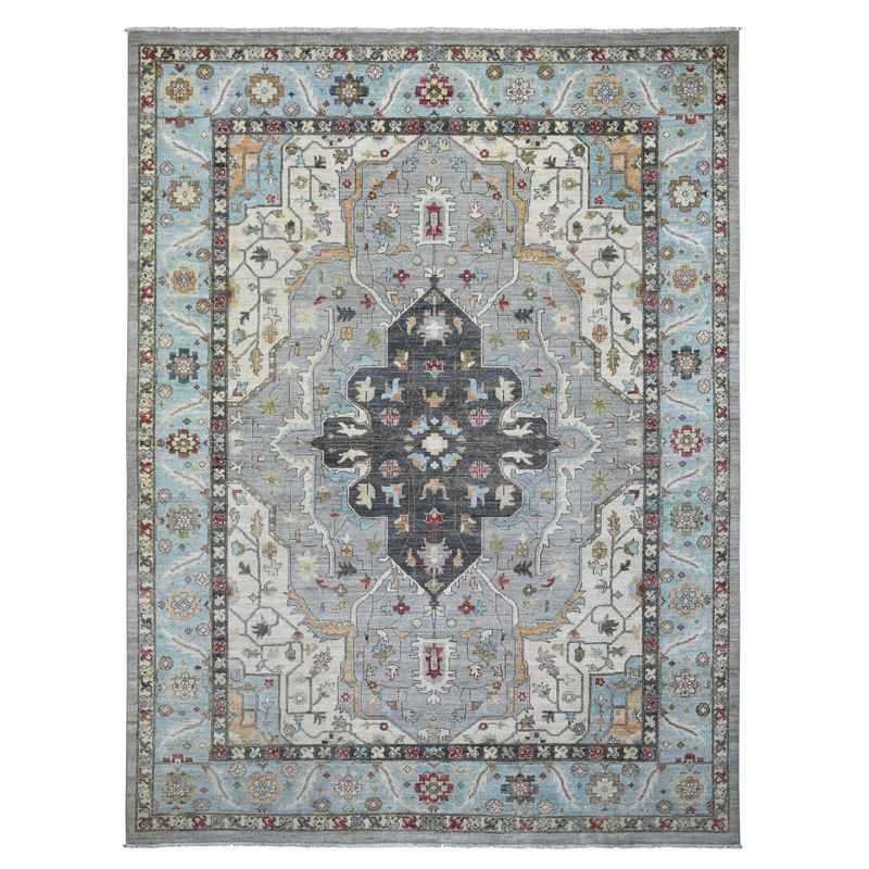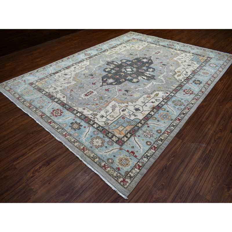 9’2″x12′ Cloud Gray, Fine Peshawar with Heriz Design Natural Dyes, 100% Wool Hand Knotted, Oriental Rug Sh71132