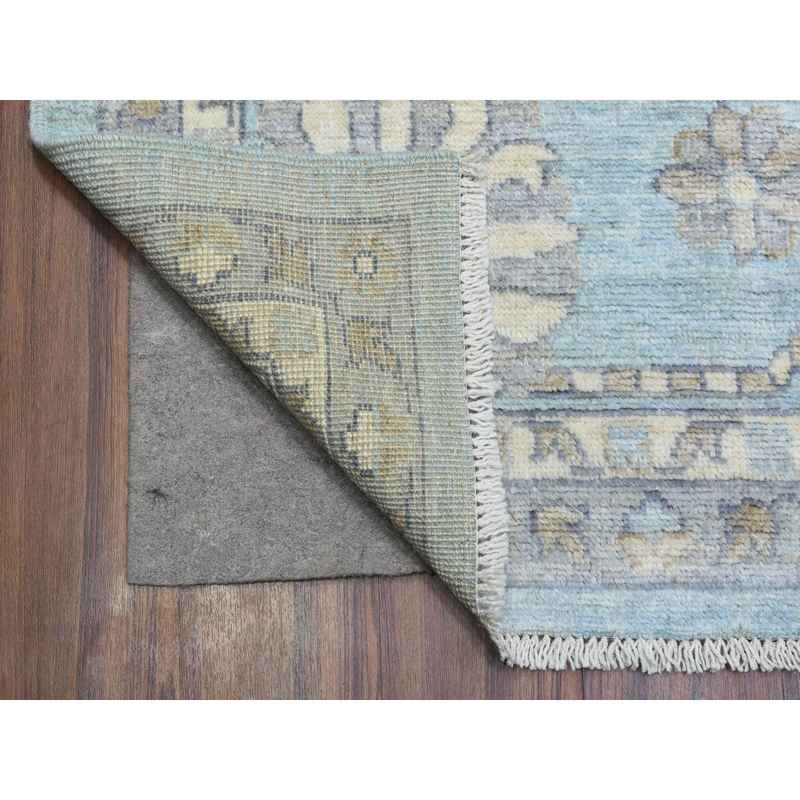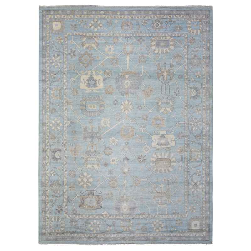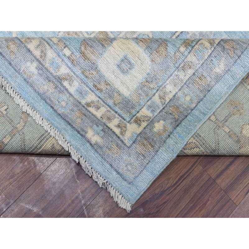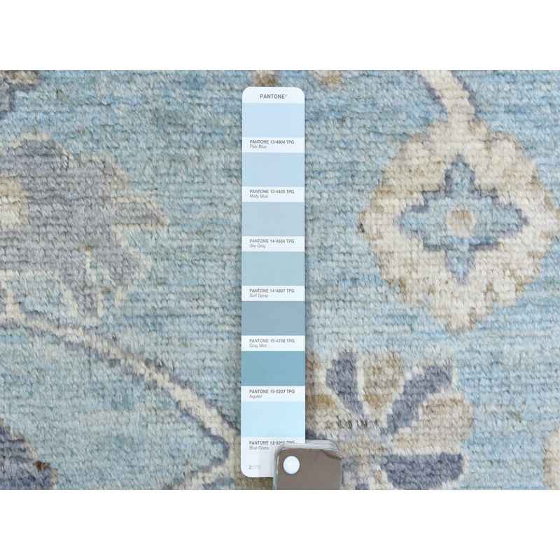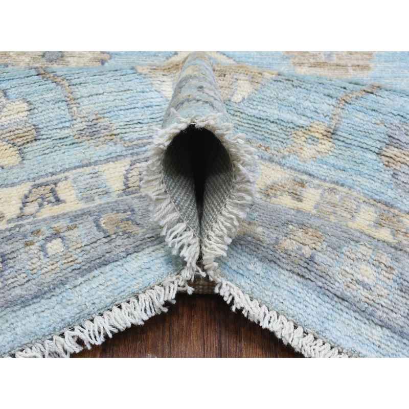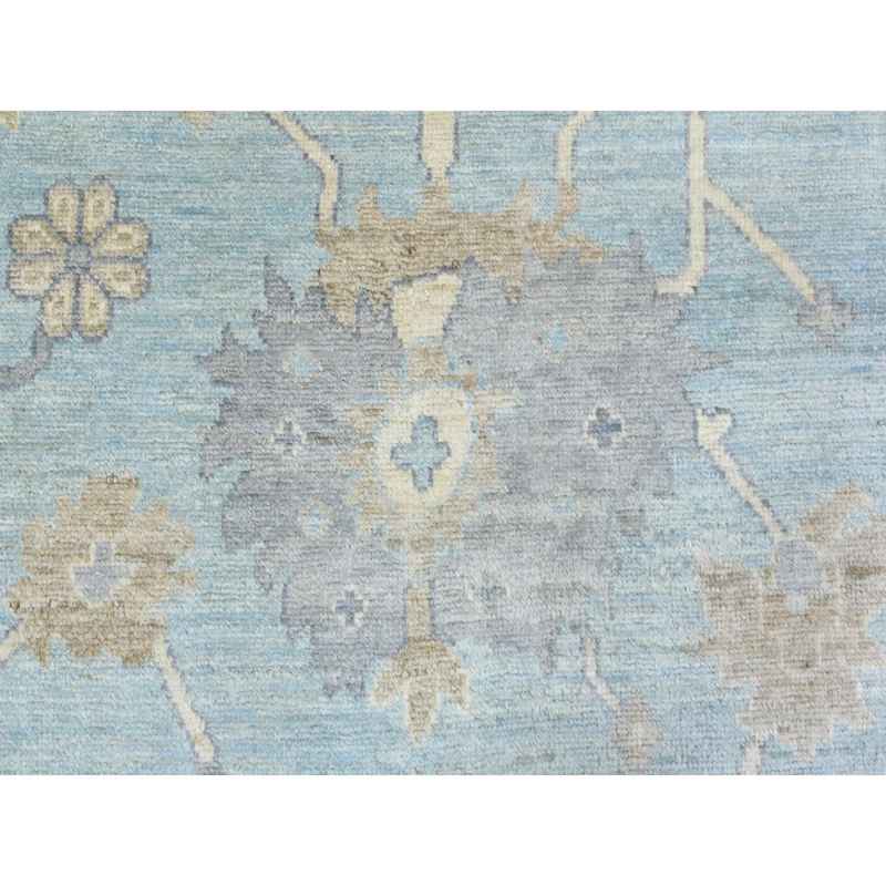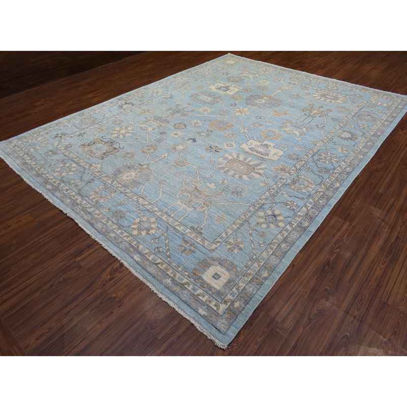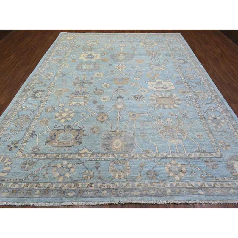 9’2″x12′ Light Blue, Soft and Shiny Wool Hand Knotted, Afghan Angora Oushak with Floral Pattern Natural Dyes, Oriental Rug Sh72362