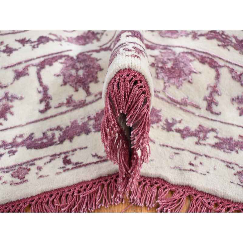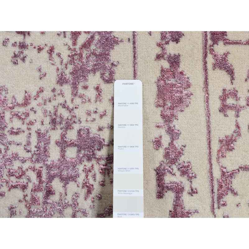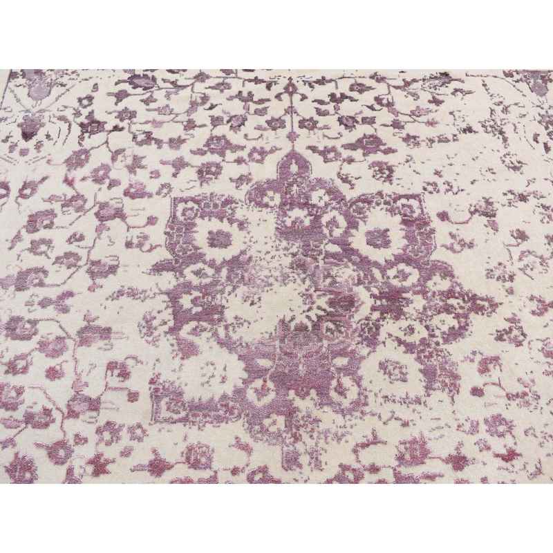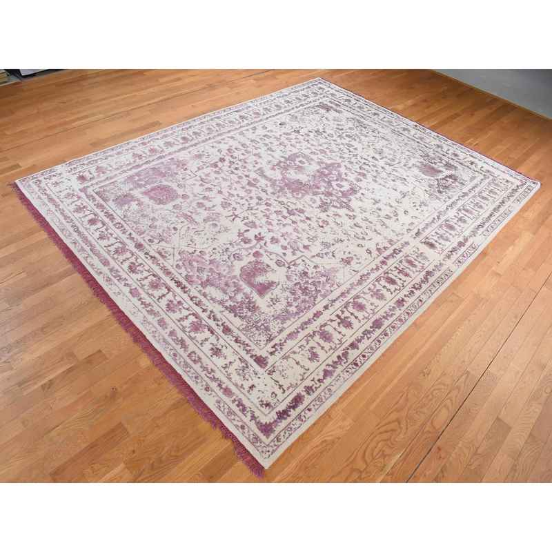9’2″x12’1″ Ivory, Wool and Silk, Handmade, Broken and Erased Persian Medallion Design, Oriental Rug Sh80910