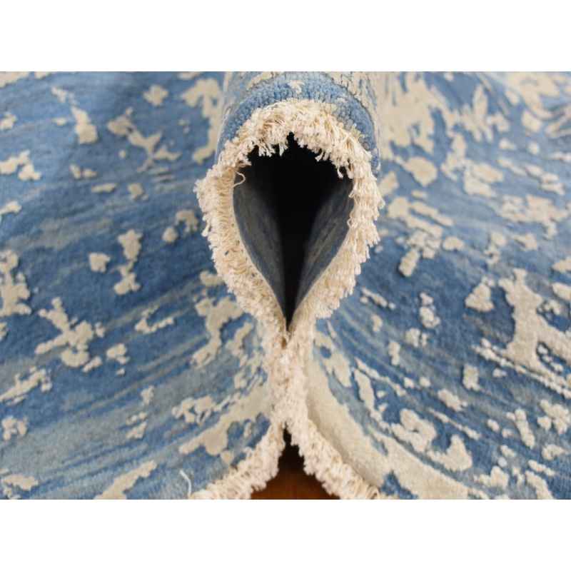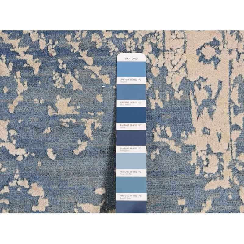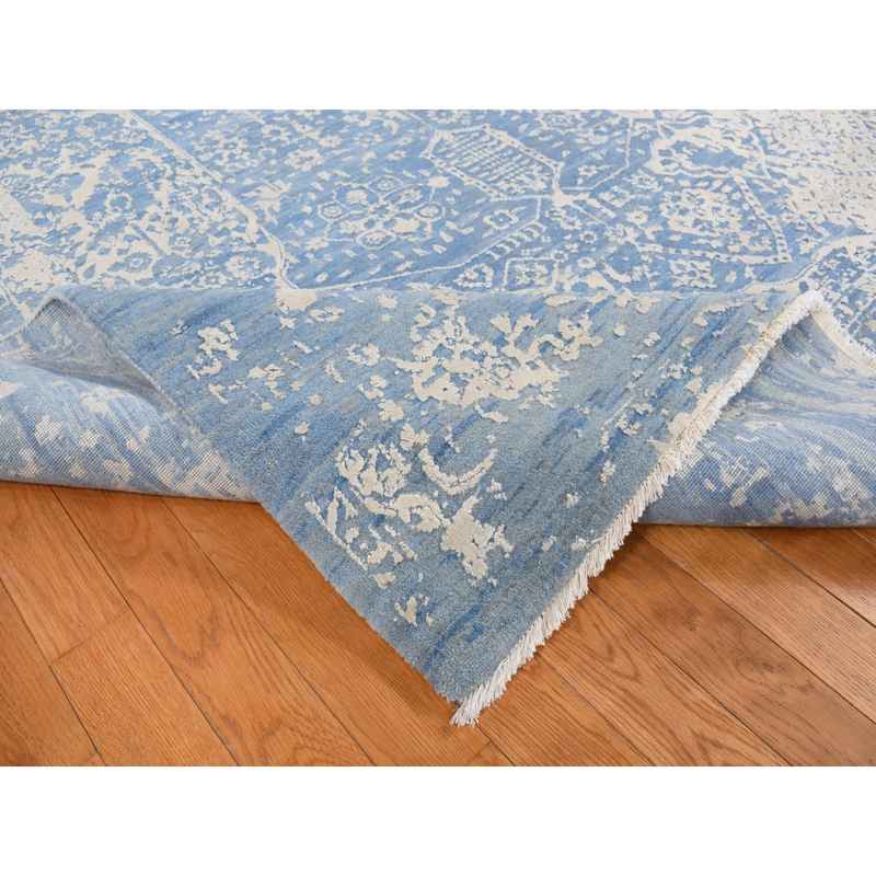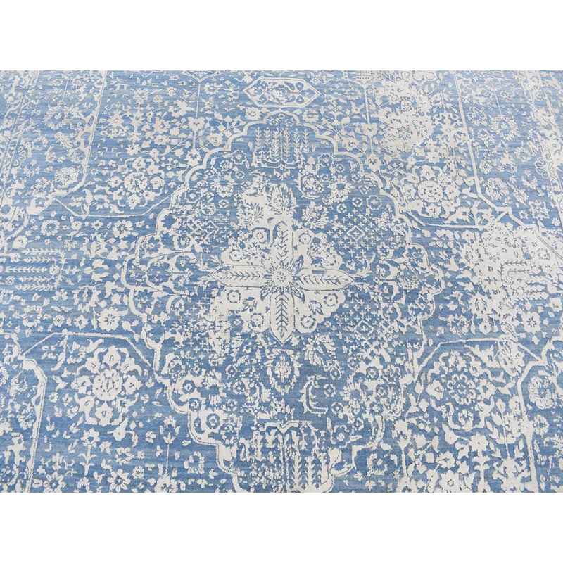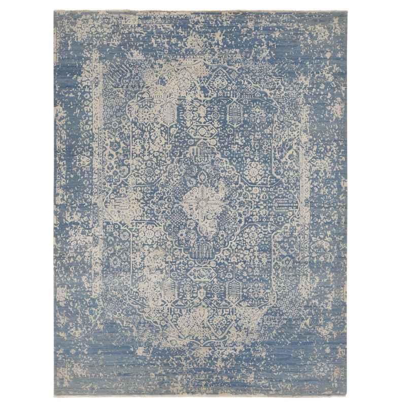 9’2″x12’1″ Steel Blue, Broken and Erased Persian Design, Wool and Pure Silk, Hand Knotted, Oriental Rug Sh87063