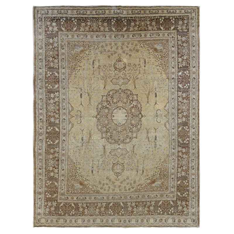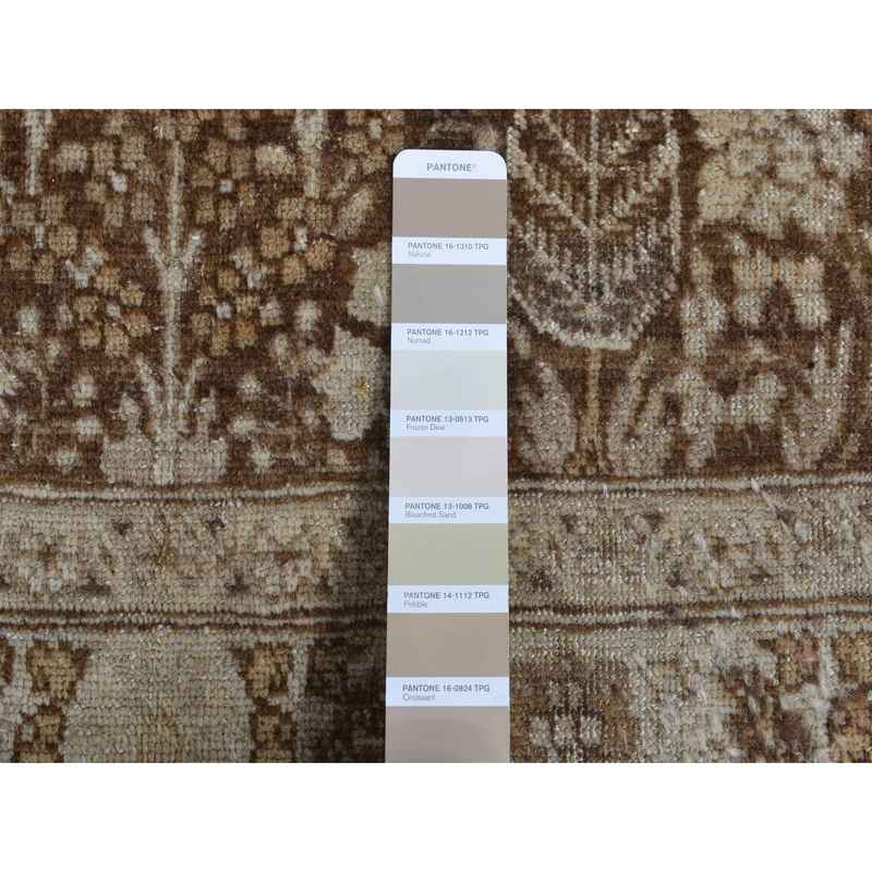 9’2″x12’5″ Beeswax Brown, Antique Persian Tabriz, Birds and Trees Design, Pure Wool, Even Wear, Hand Knotted, Oriental Rug Sh87701