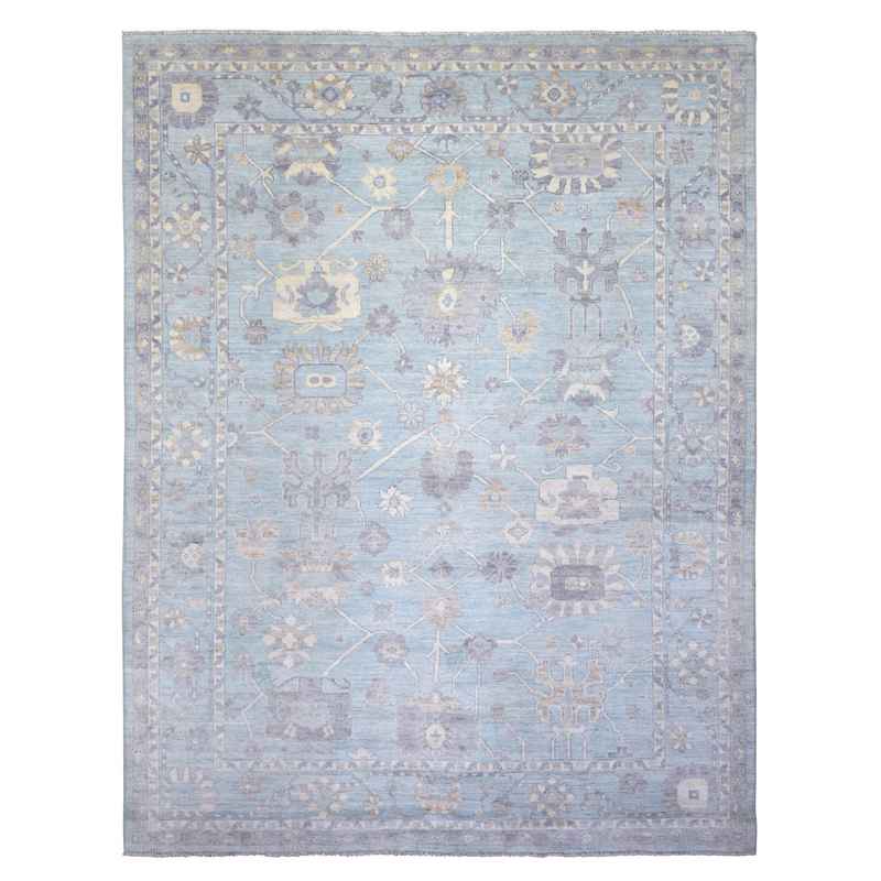 9’3″x12′ Blue Angora Oushak All Over Motifs Natural Dyes, Afghan Wool Hand Knotted Oriental Rug Sh72140