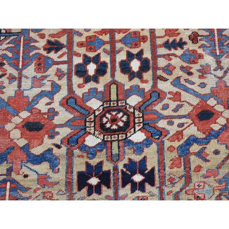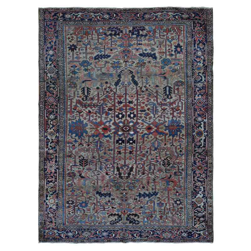 9’3″x12’4″ Beige, Antique Persian Heriz with All Over Design, Pure Wool, Good Condition, Hand Knotted, Clean, Sides and Ends Professionally Secured, Oriental Rug Sh87918