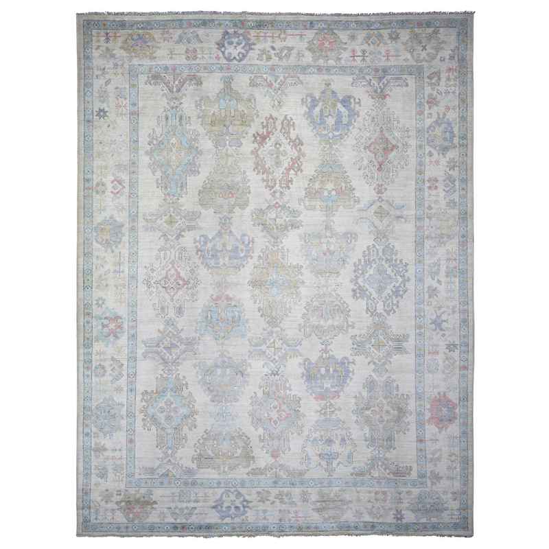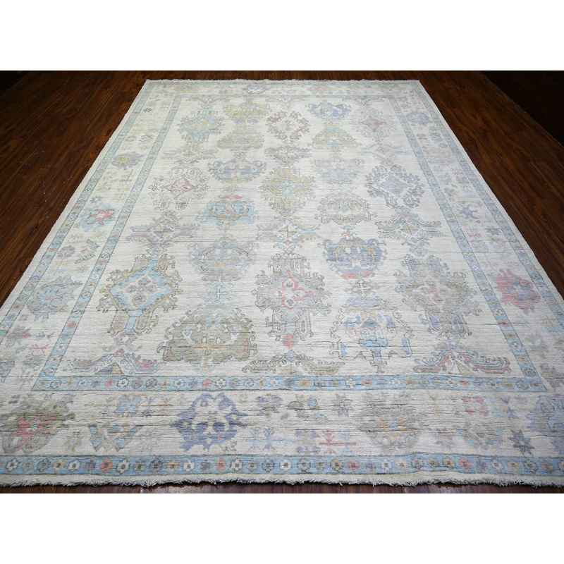 9’4″x12′ Acadia White, Afghan Angora Oushak with Floral Pattern Natural Dyes, 100% Wool Hand Knotted, Oriental Rug Sh73796