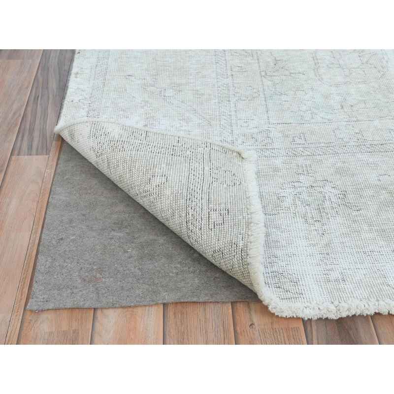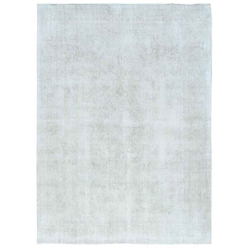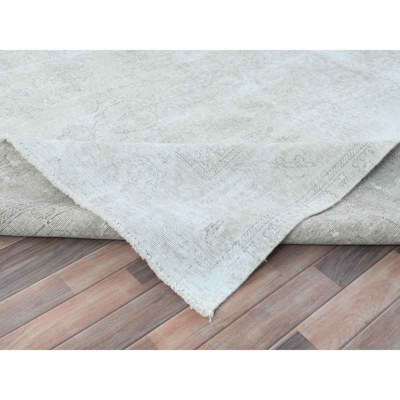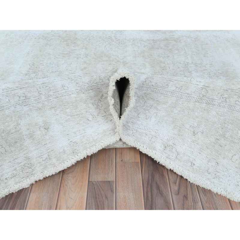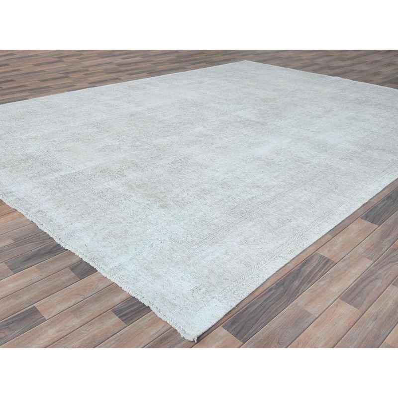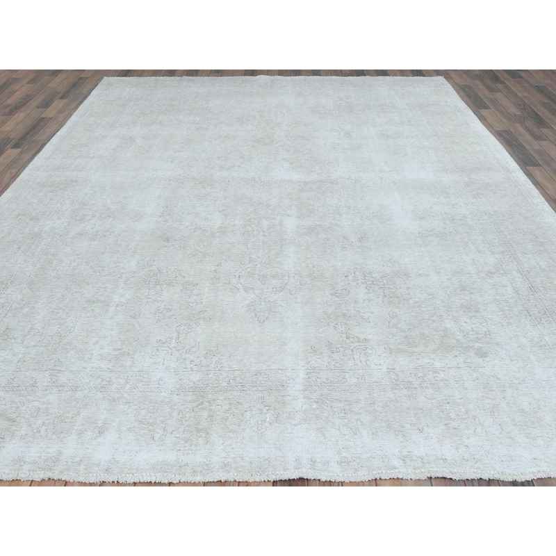 9’4″x13′ Ivory, Vintage Persian Tabriz Cropped Thin Distressed Look, Shabby Chic Worn Wool Hand Knotted, Oriental Rug Sh81692