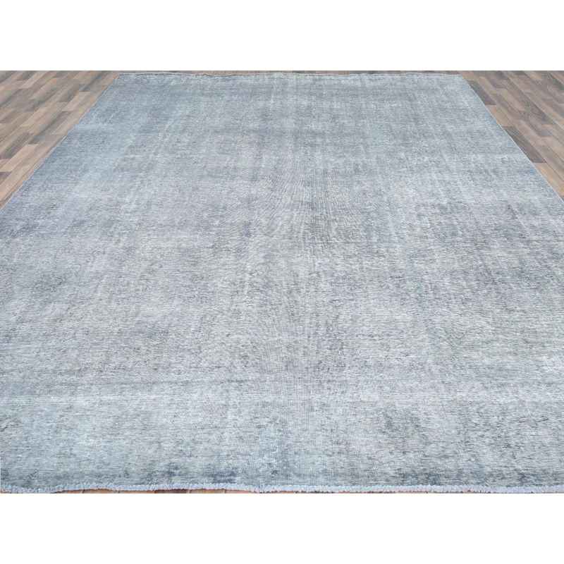 9’5″x12’2″ Light Gray, Shaved Down Rustic Look, Worn Wool Hand Knotted, Vintage Persian Tabriz, Oriental Rug Sh82097