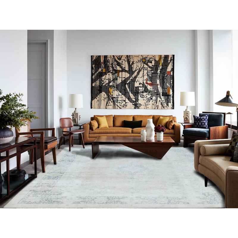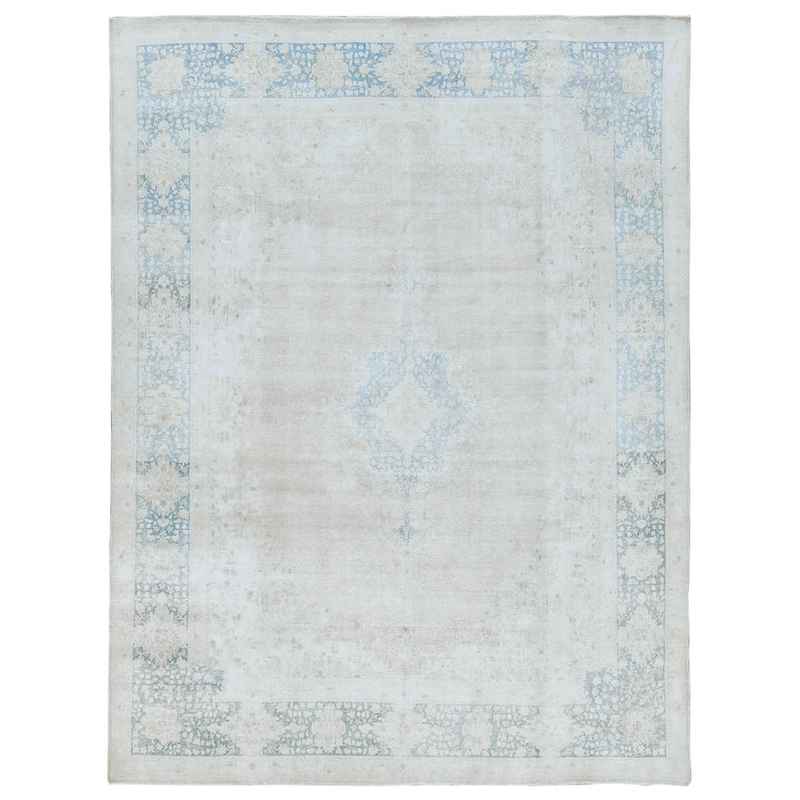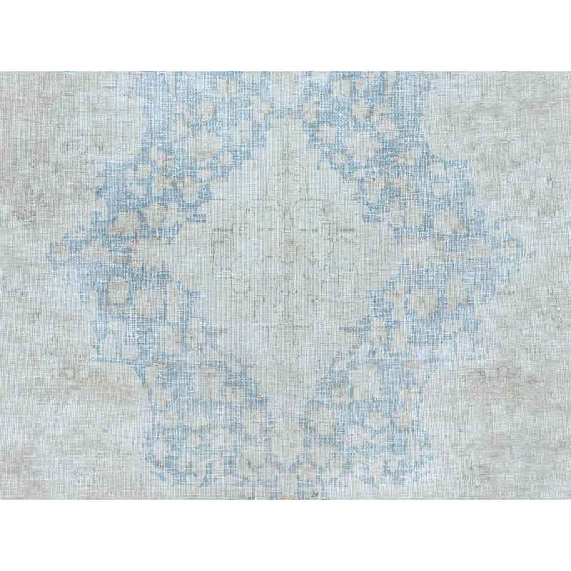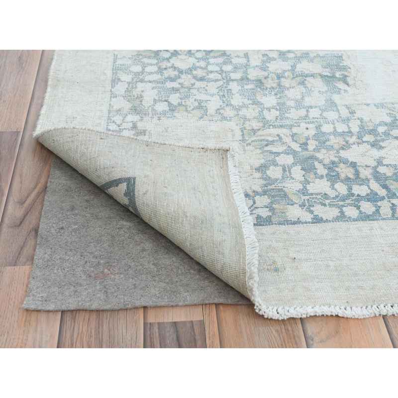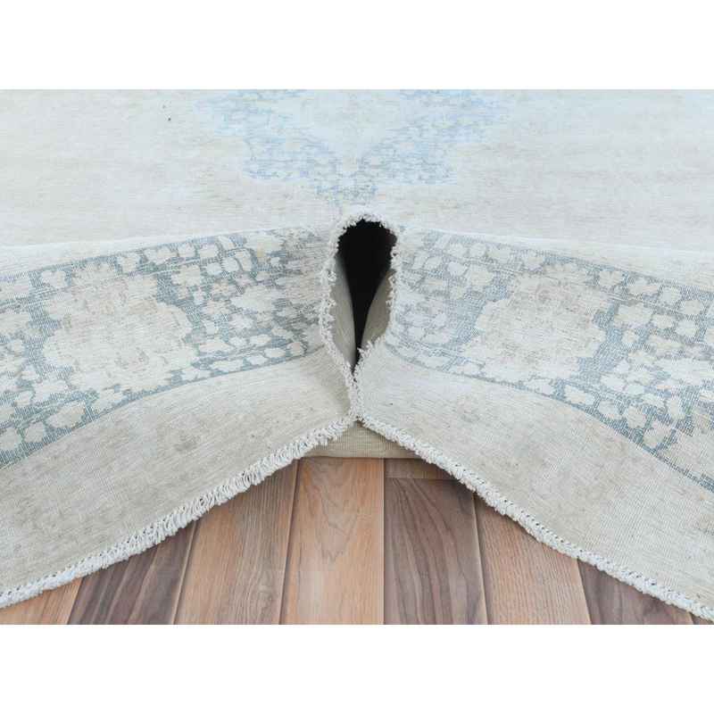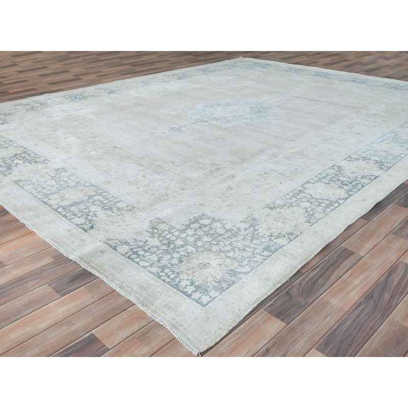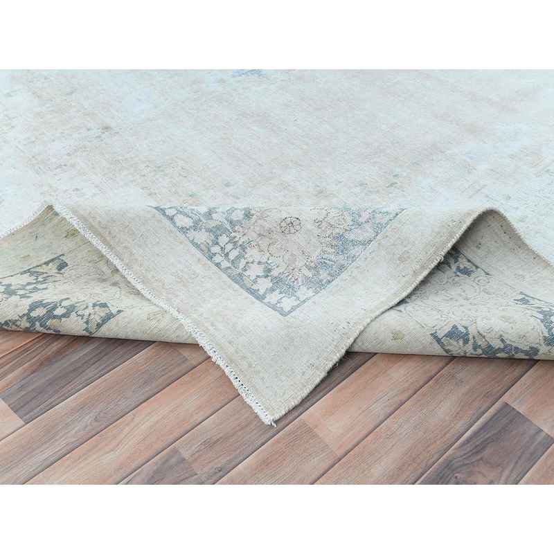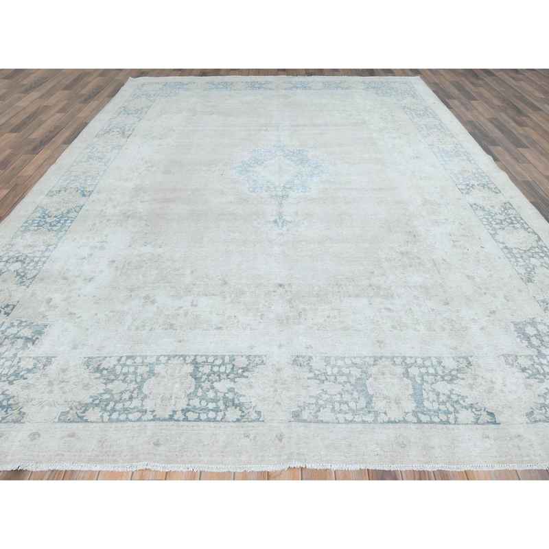 9’5″x12’6″ Ivory Vintage Persian Kerman Hand Knotted Cropped Thin, Worn Wool Shabby Chic Distressed Look Oriental Rug Sh81609
