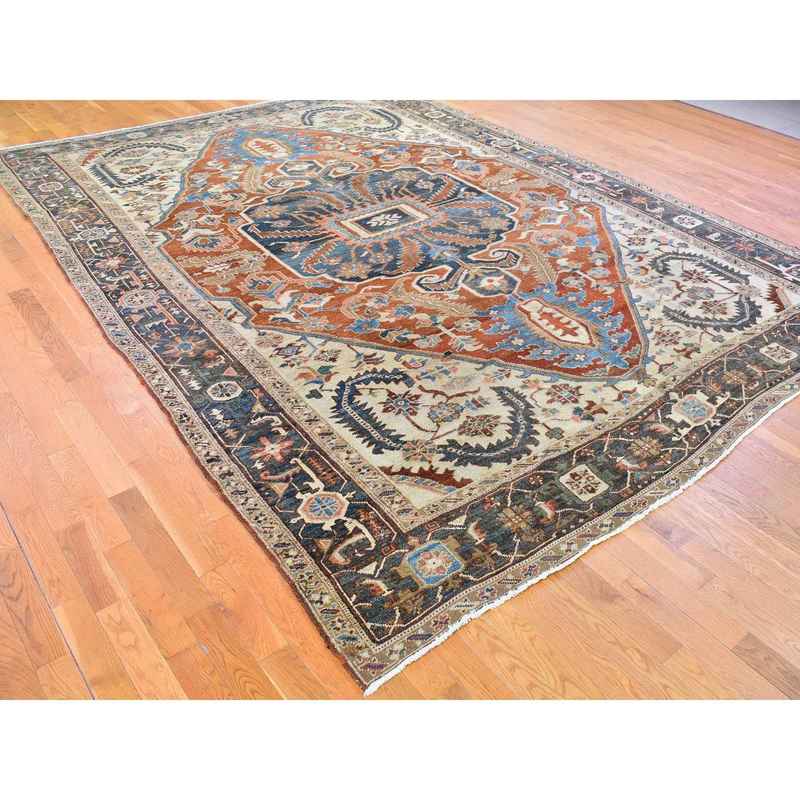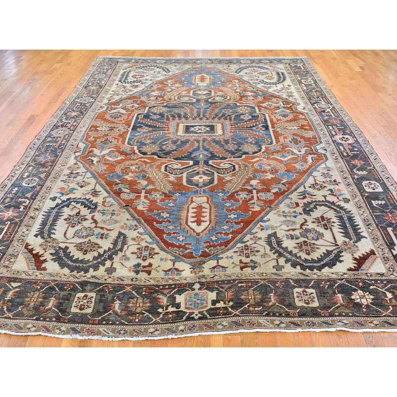9’5″x12’7″ Terracotta Antique Persian Heriz Good Condition Serrated Leaf Design Natural Wool Clean Hand Knotted Oriental Rug Sh66839