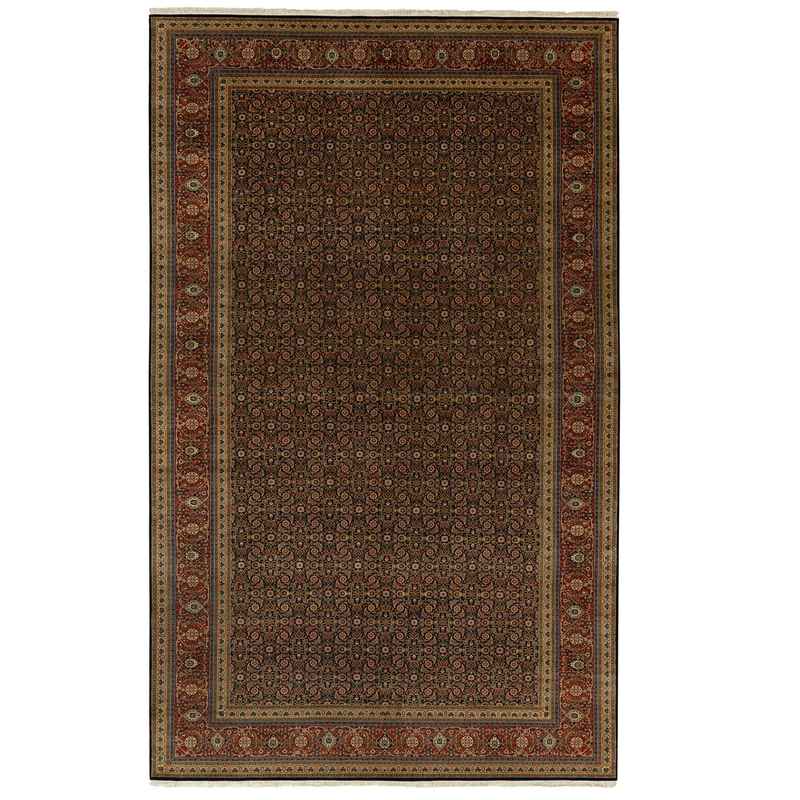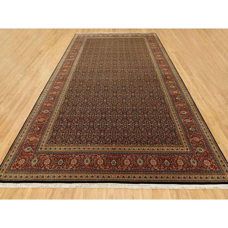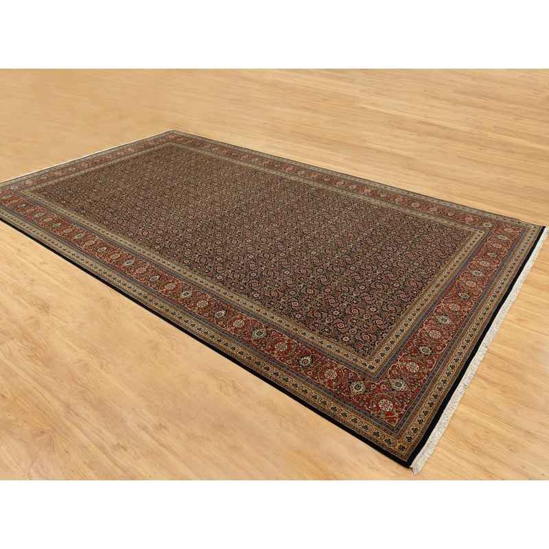 9’5″x16’1″ Pitch Black Herati Fish Design Gallery Size Long and Narrow 250 KPSI Hand Knotted Dense Weave Wool Oriental Rug Sh58648