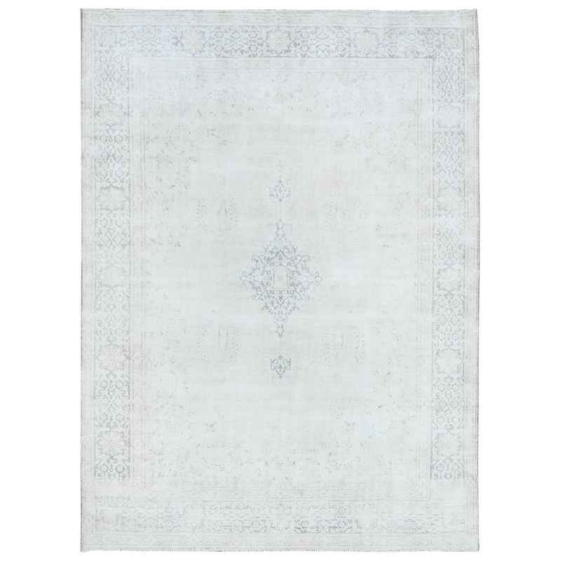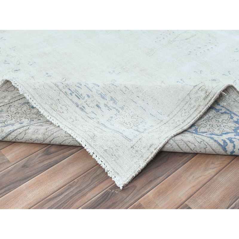 9’6″x12’9″ Ivory Semi Antique Persian Kerman Hand Knotted, Sheared Low, Worn Wool, Shabby Chic, Distressed Look Oriental Rug Sh81611
