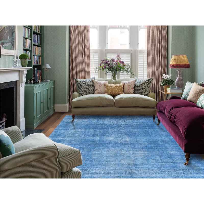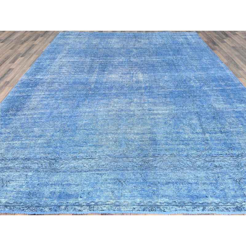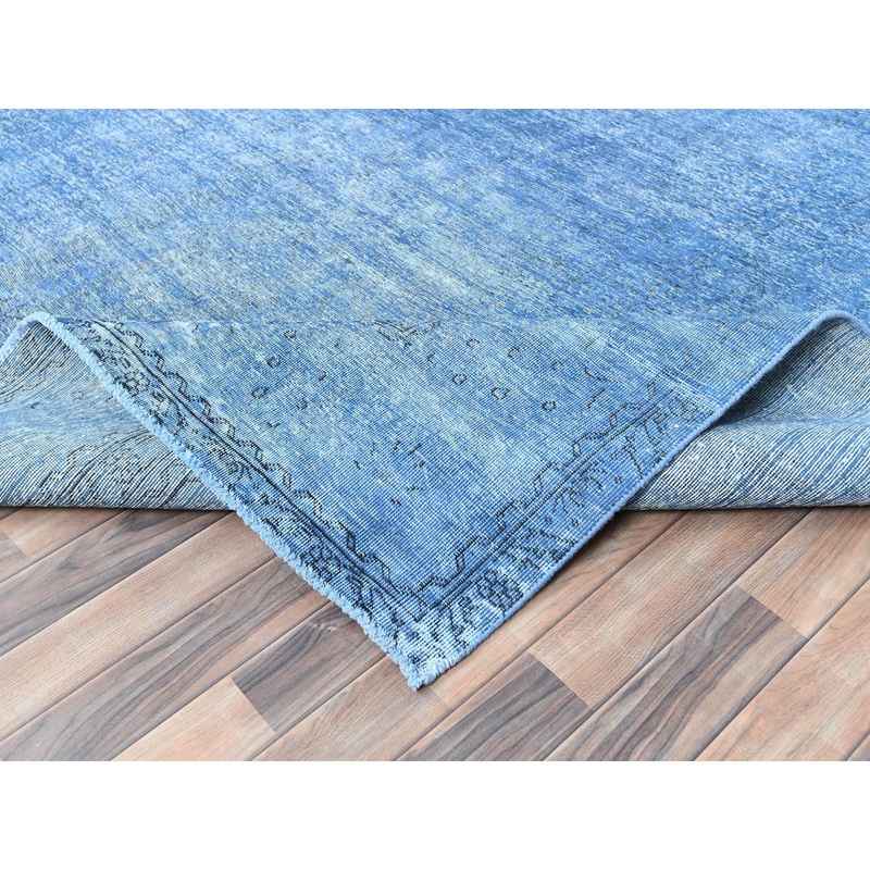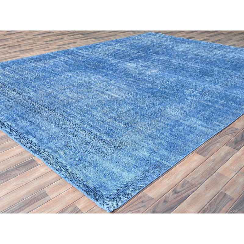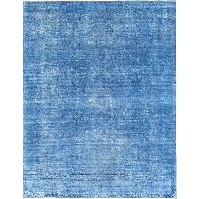 9’7″x12’2″ Denim Blue, Vintage Persian Tabriz, Worn Down Distressed Look, Worn Wool Hand Knotted, Oriental Rug Sh82346