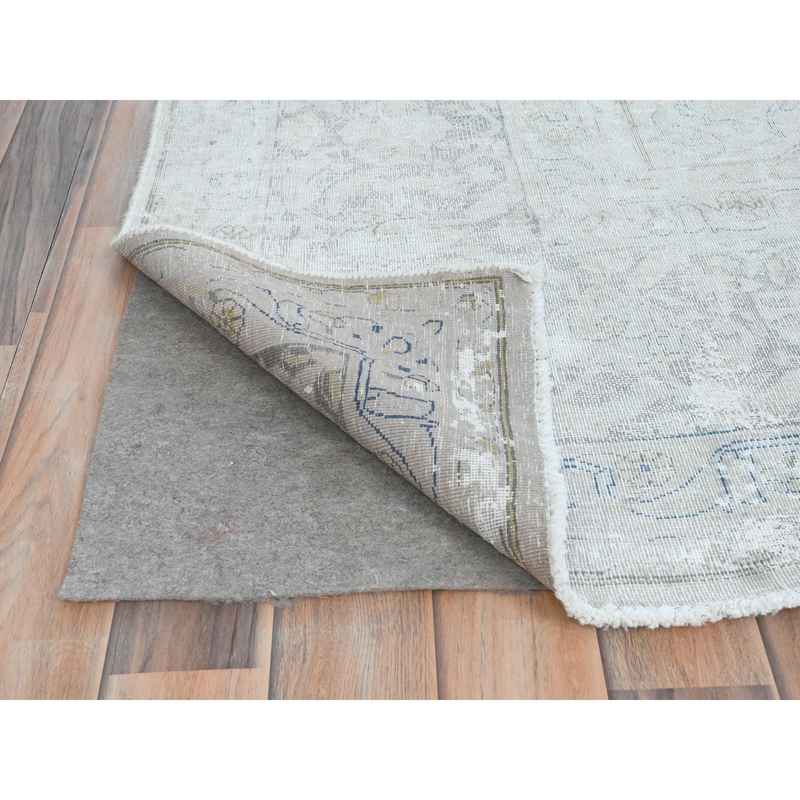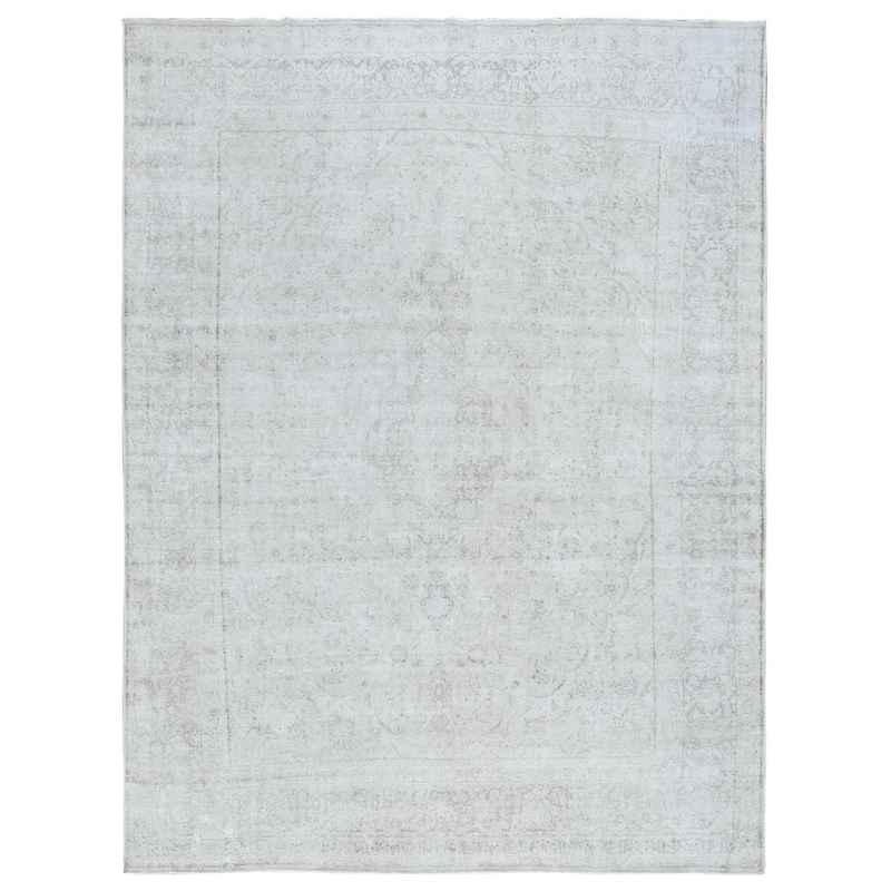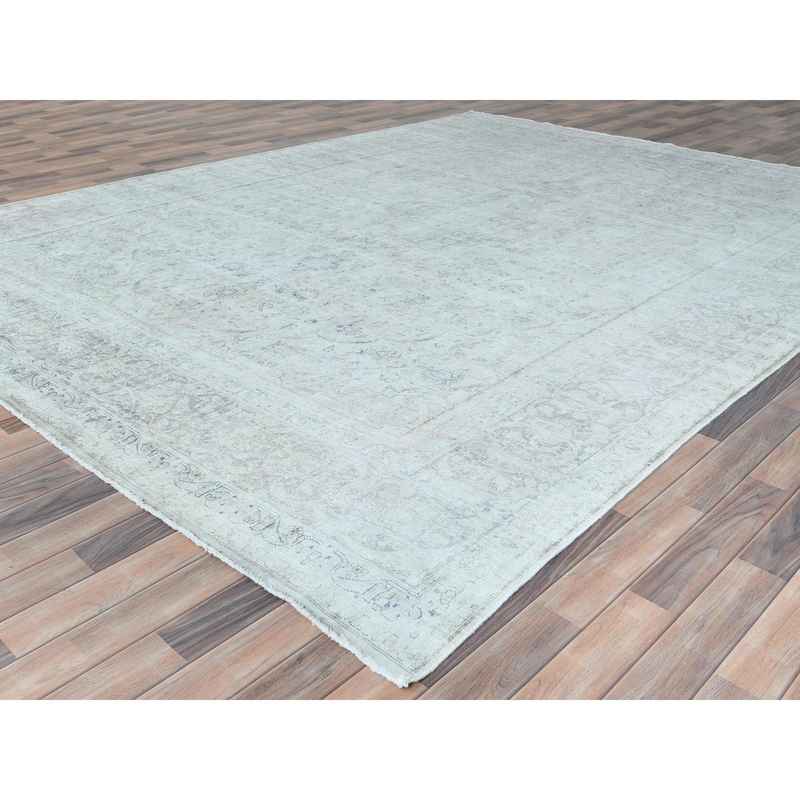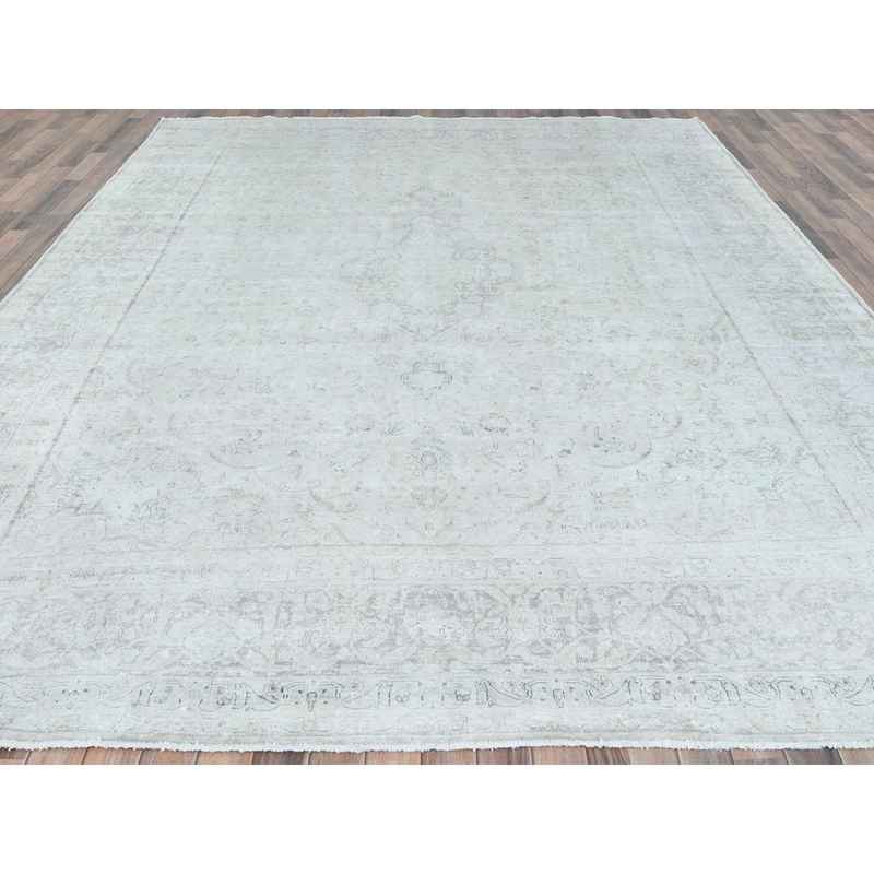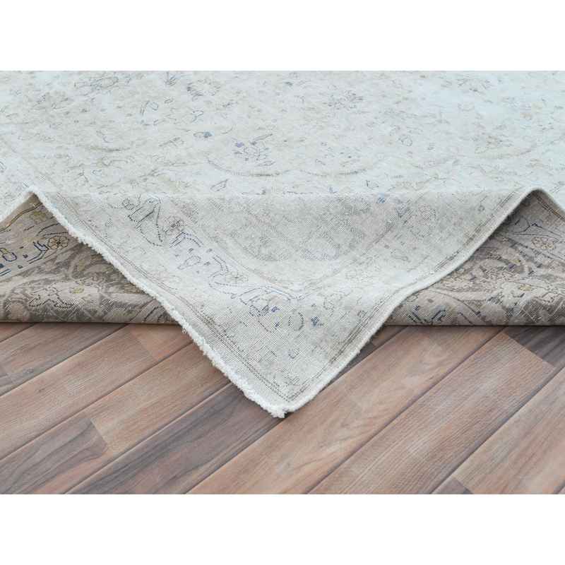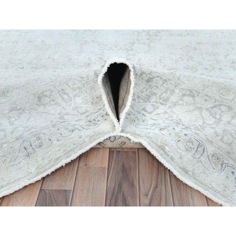 9’7″x12’6″ Ivory Vintage Persian Kerman Hand Knotted Cropped Thin, Worn Wool Distressed Look Shabby Chic Oriental Rug Sh81624