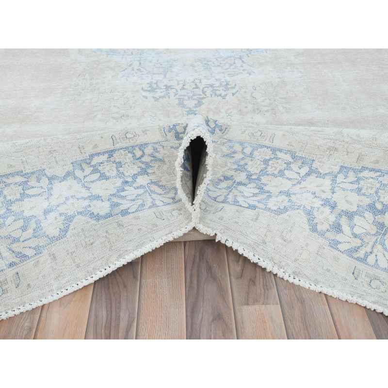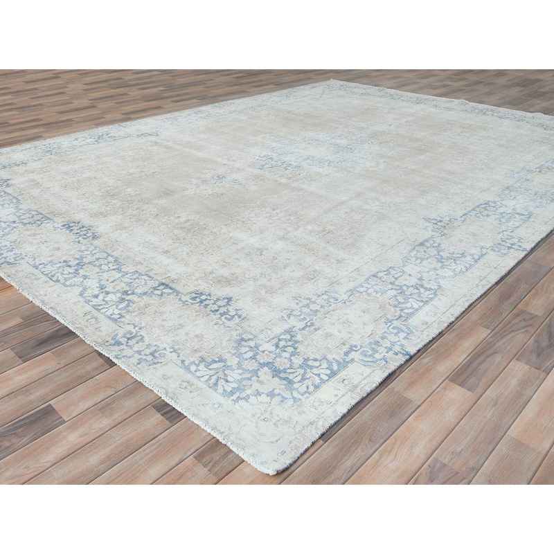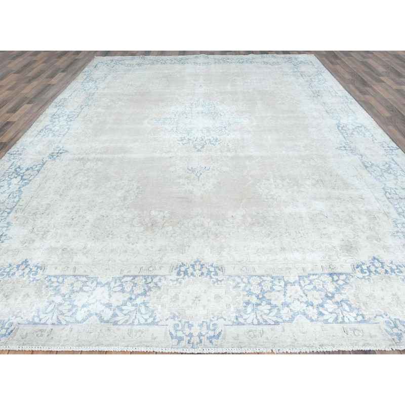 9’7″x13’2″ Beige Vintage Persian Kerman Shabby Chic, Sheared Low, Worn Wool Distressed Look Hand Knotted Oriental Rug Sh81628