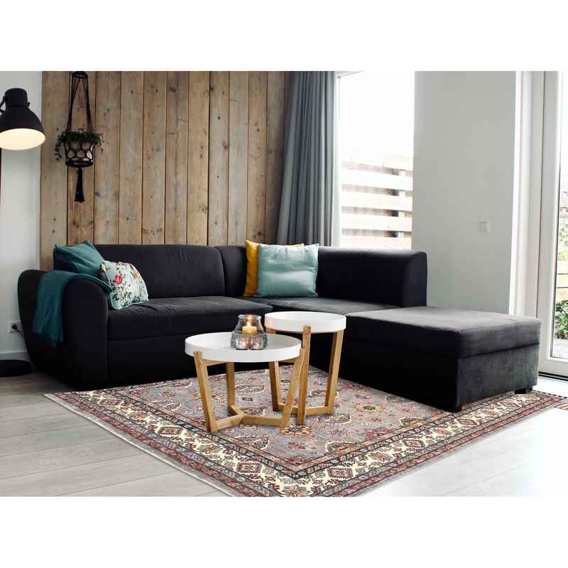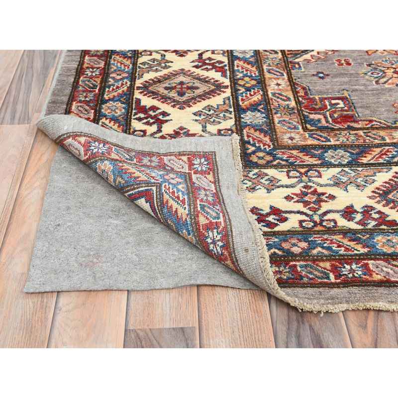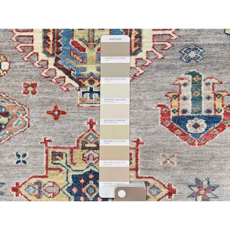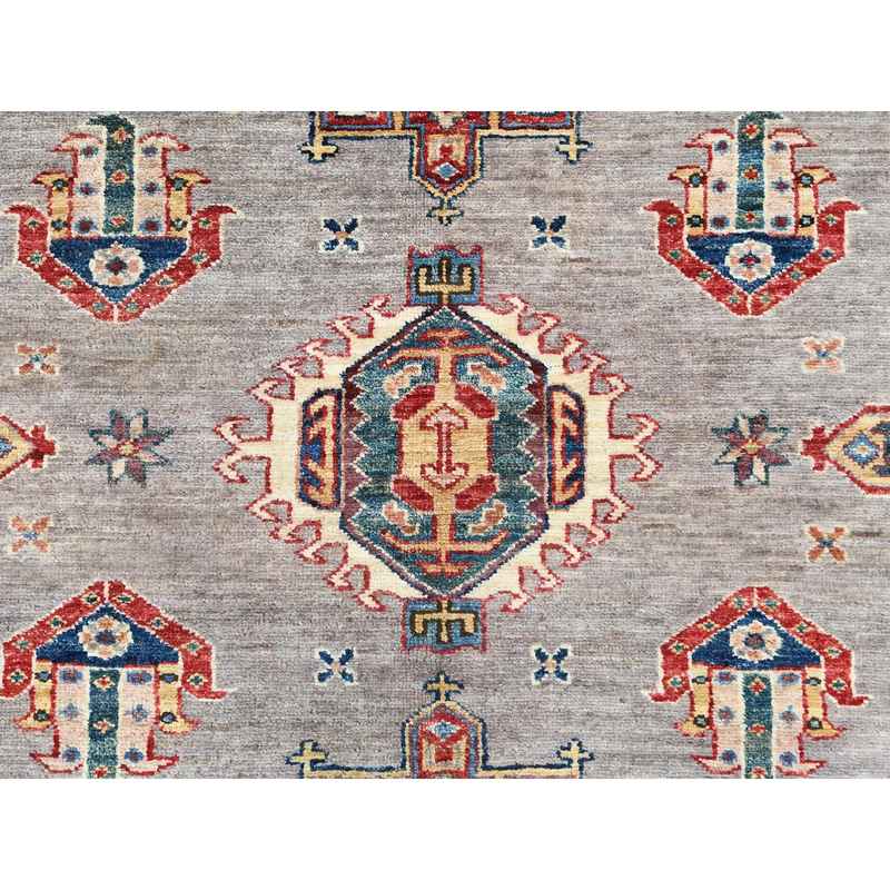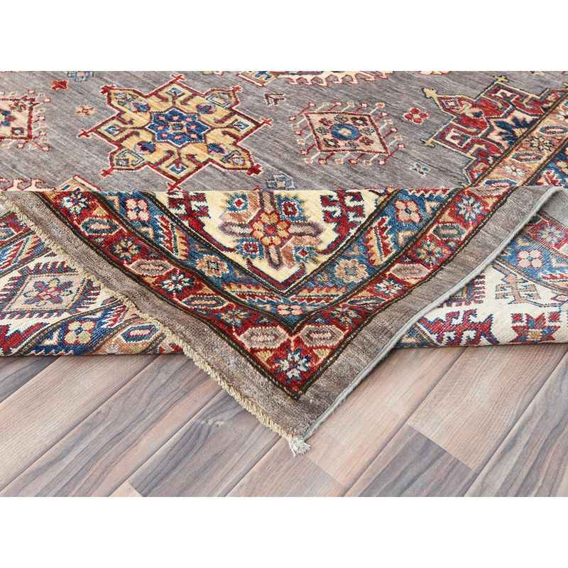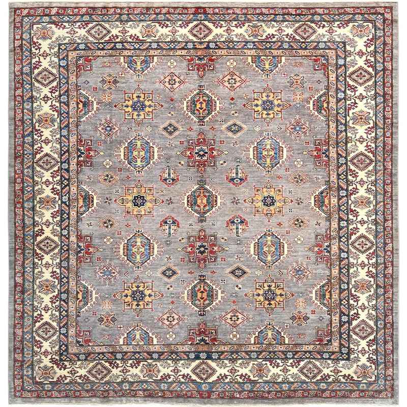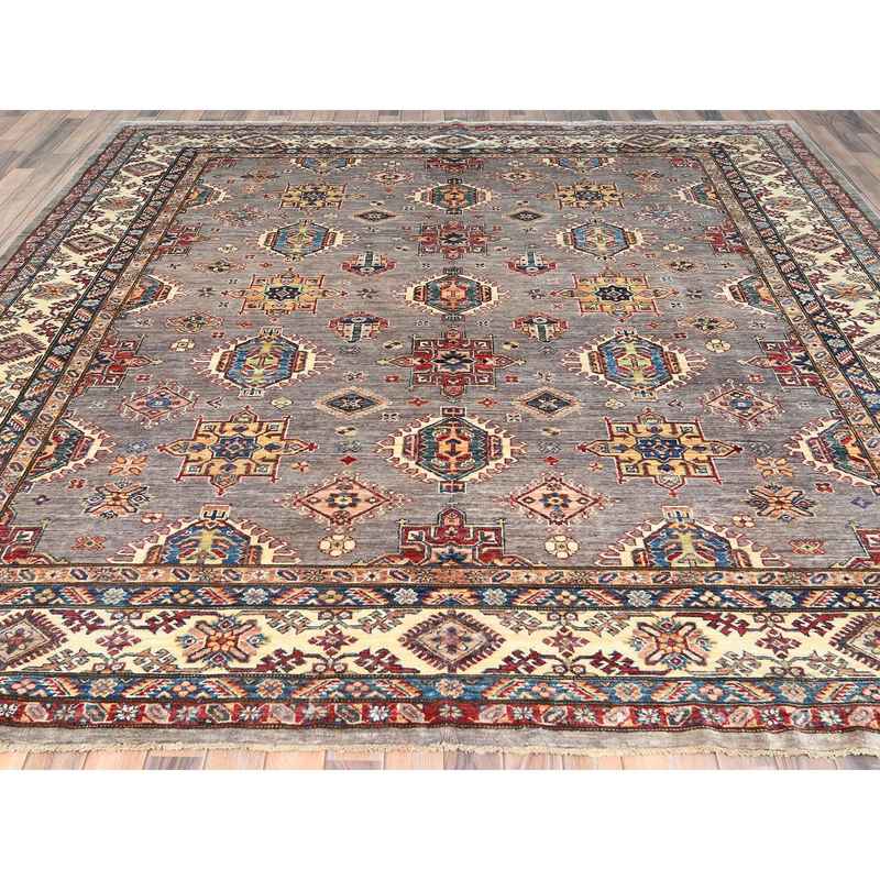 9’7″x9’9″ Gray, Afghan Super Kazak with Tribal Medallions, Vegetable Dyes Dense Weave, Soft Wool Hand Knotted, Square Oriental Rug Sh82437
