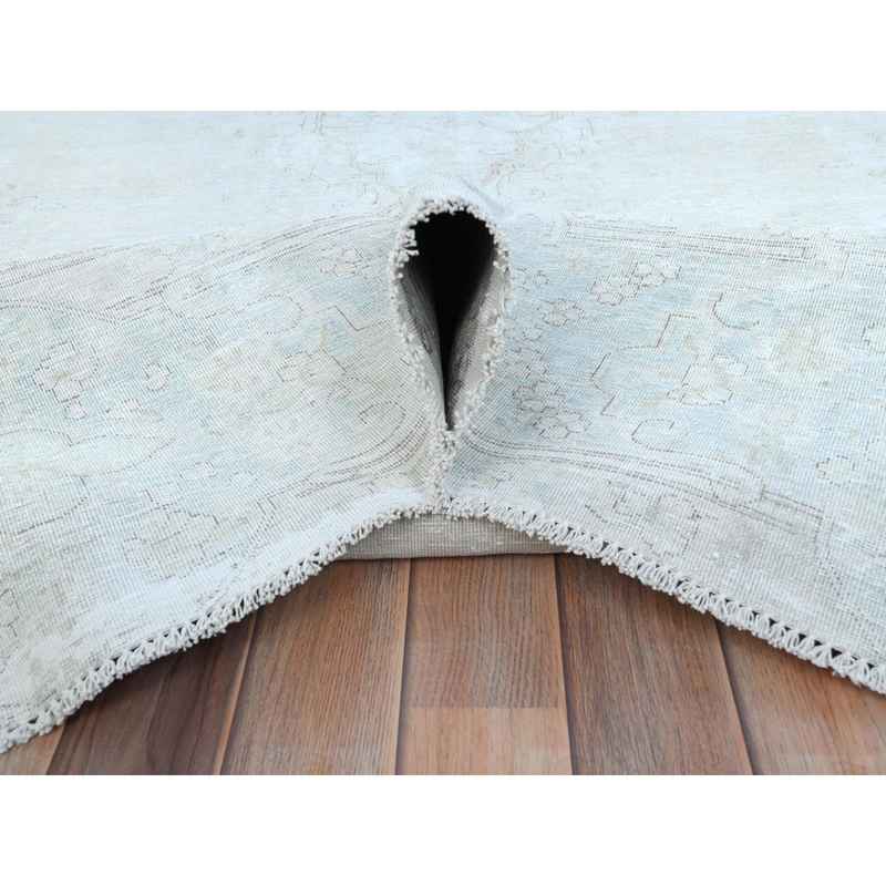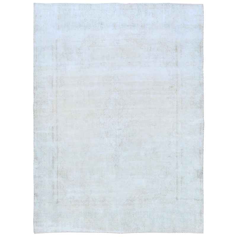 9’8″x12’10” Beige Hand Knotted Worn Wool, Cropped Thin Distressed Look Vintage Persian Kerman Oriental Rug Sh81248