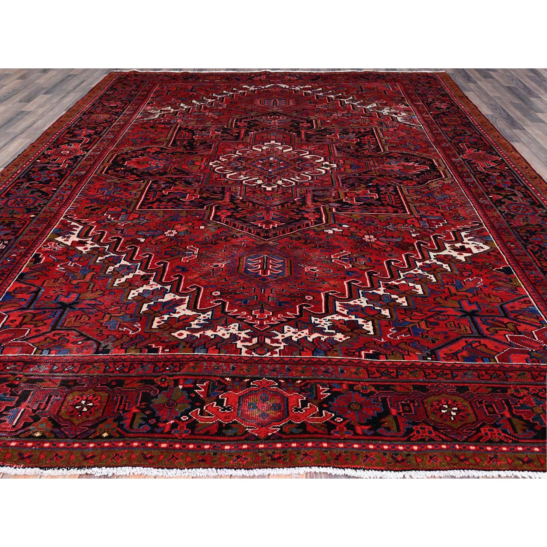 9’8″x12’3″ Merlot Deep Red With Colorful Large Motif, Good Condition, Clean With Pop Of Color, Organic Wool, Semi Antique Nomad Art Persian Heriz Oriental Rug Sh166
