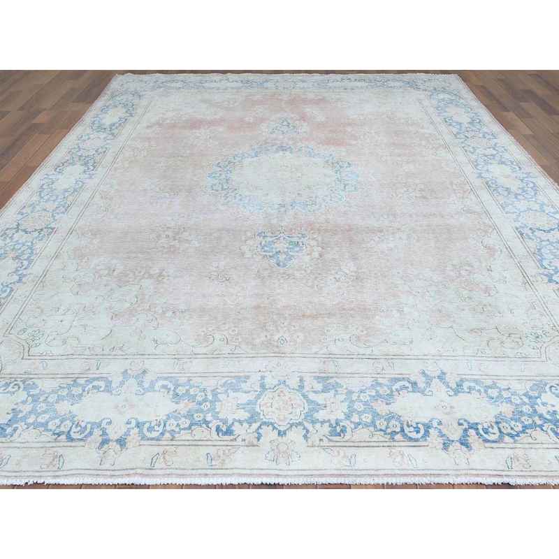 9’8″x12’7″ Cork Brown, Persian Kerman, Old Clean, Sun Faded with Milk Wash Organic Wool, Low to the Pile, Hand Knotted, Oriental Rug Sh61404