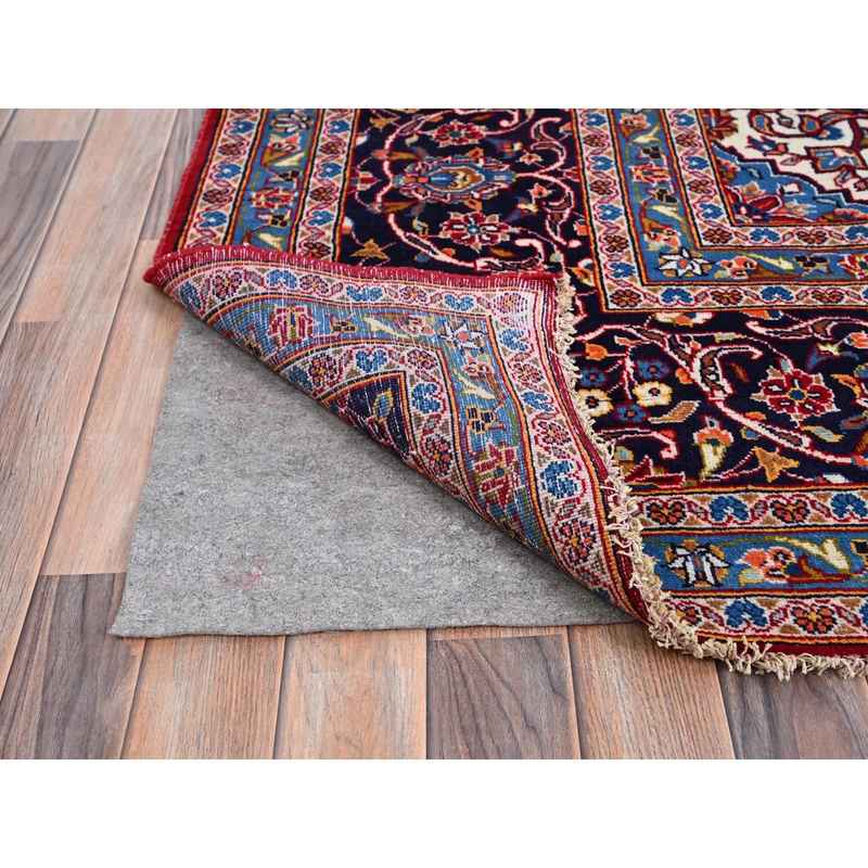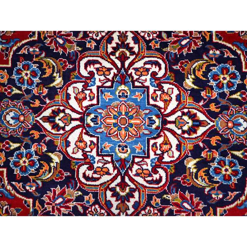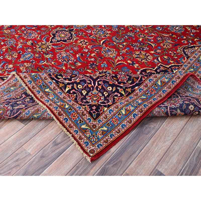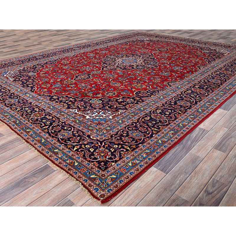 9’8″x13’1″ Auburn Red and Prussian Blue, Hand Knotted Soft and Vibrant Wool, Tribal Floor Art, Full Pile, Vintage Persian Kashan Medallion Design, Oriental Rug Sh86698