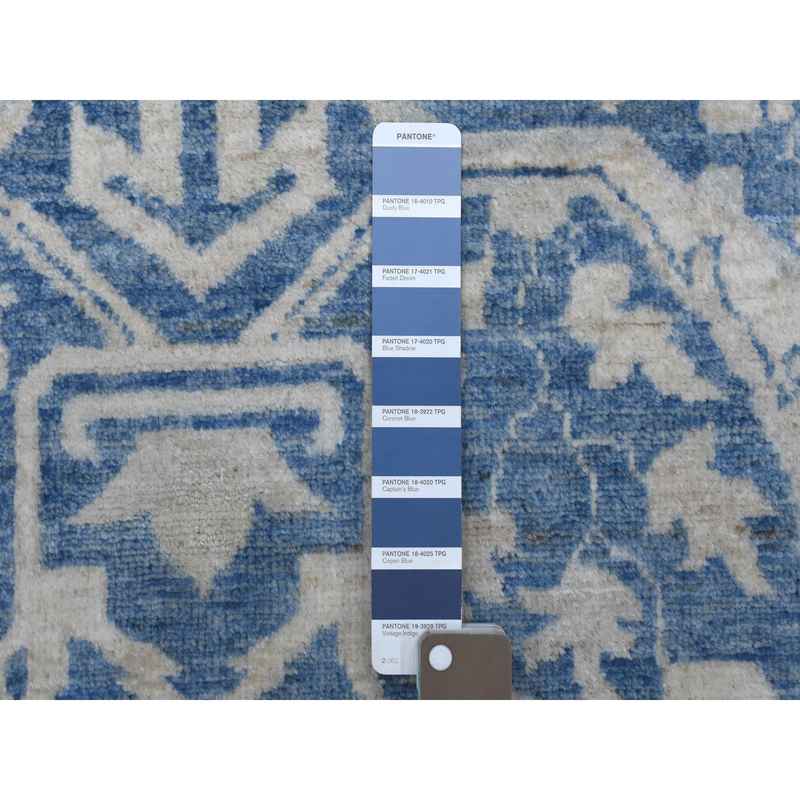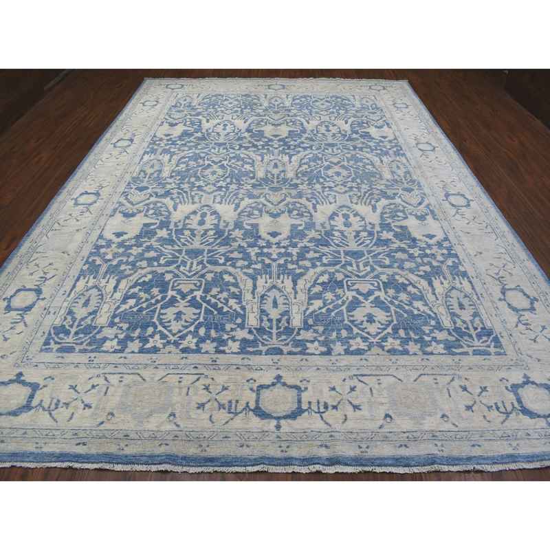9’8″x13’5″ Denim Blue, Soft Wool Hand Knotted White Wash Peshawar, Natural Dyes Densely Woven, Oriental Rug Sh68324