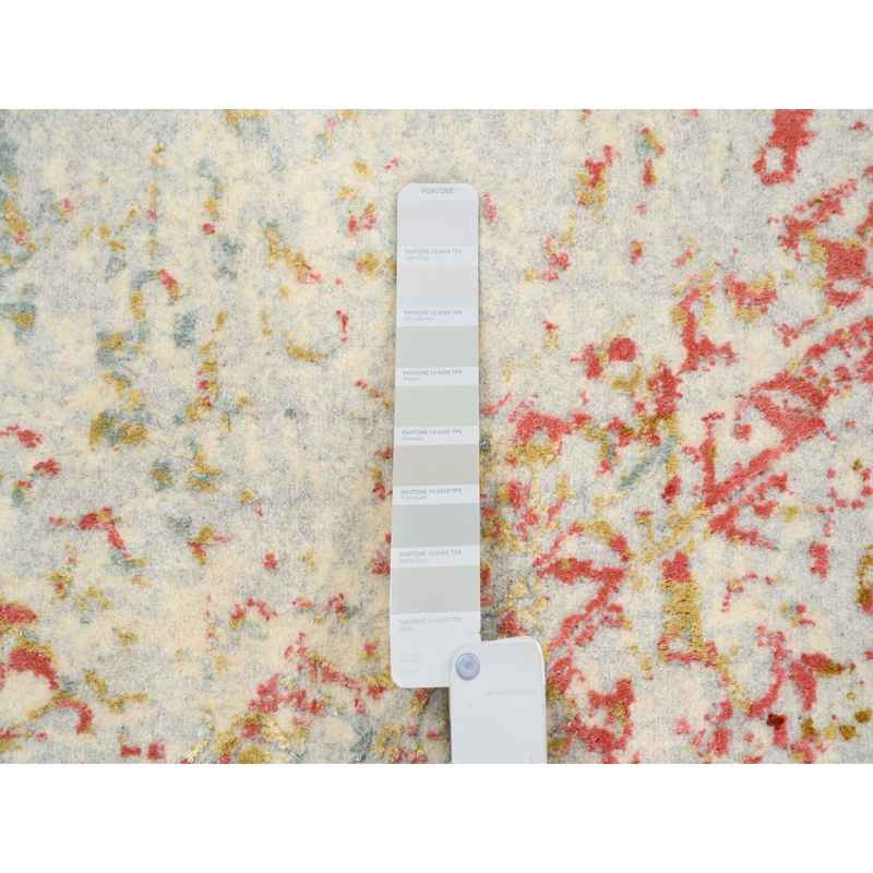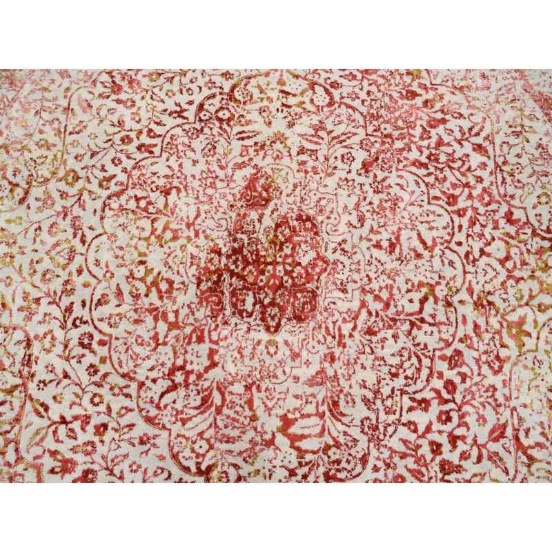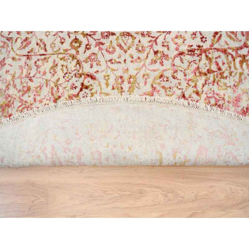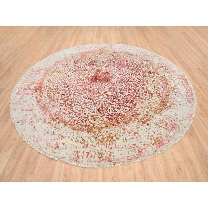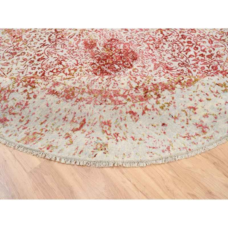 9’8″x9’8″ Wool and Pure Silk Hand Knotted Pink Persian Erased Medallion Design Oriental Round Rug Sh63468