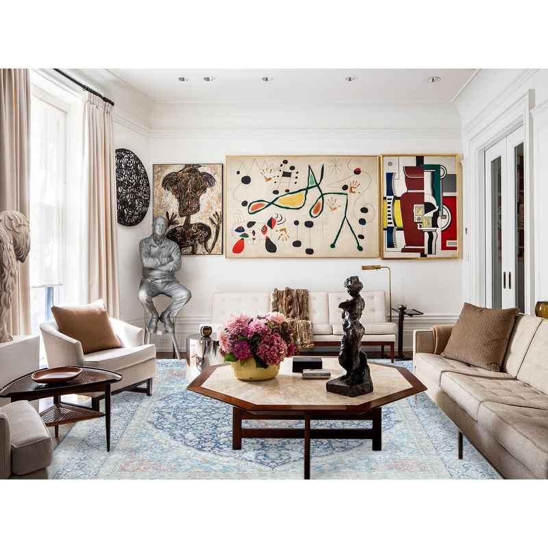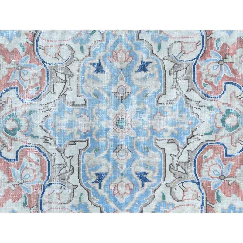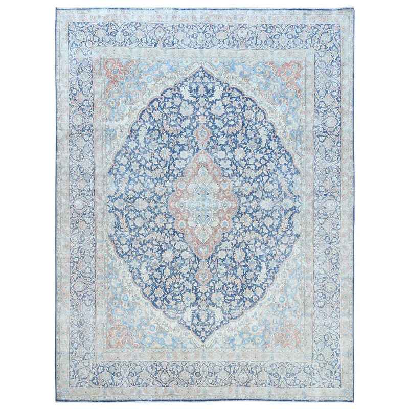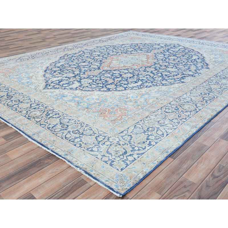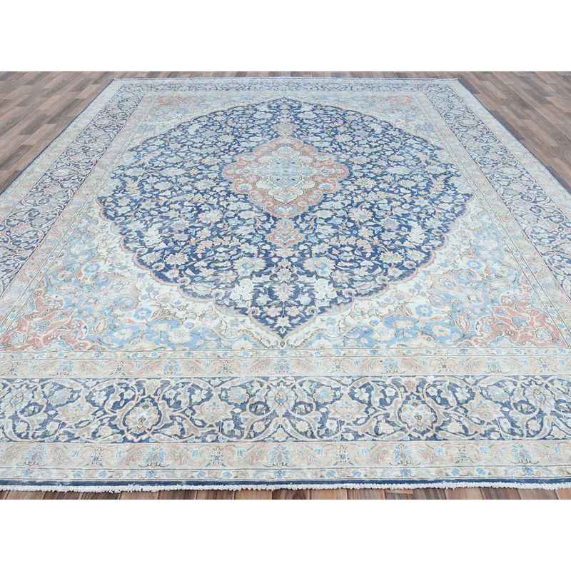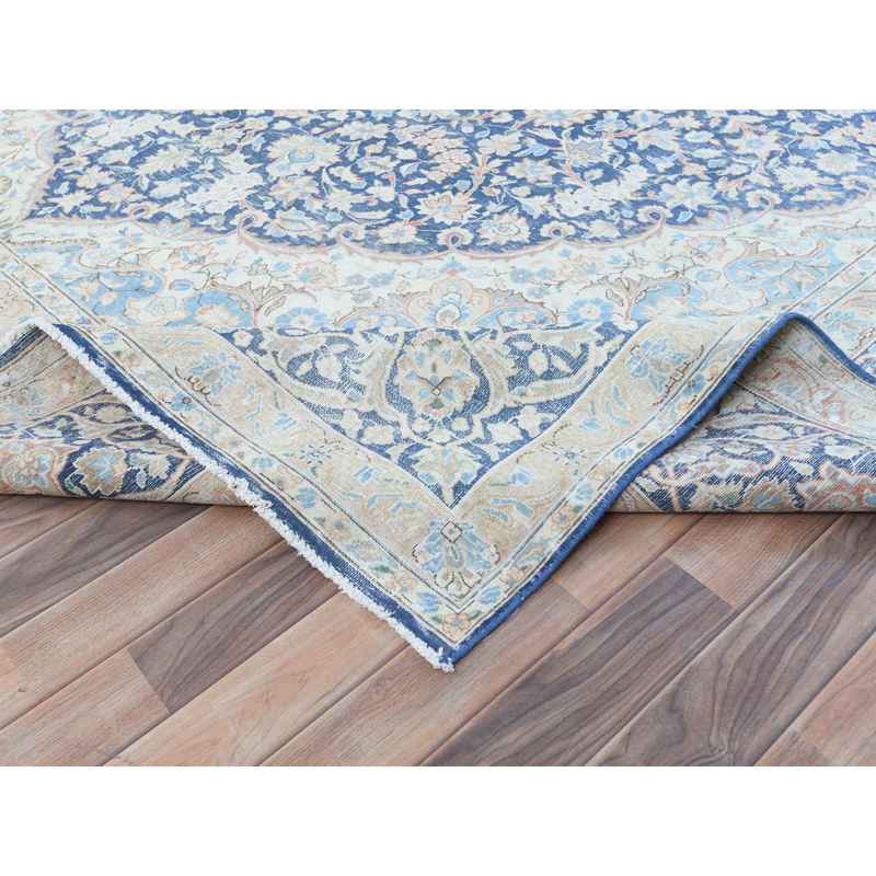 9’9″x12’8″ Navy Blue Vintage Persian Kerman Worn Wool, Sheared Low, Hand Knotted Distressed Look Oriental Rug Sh81260