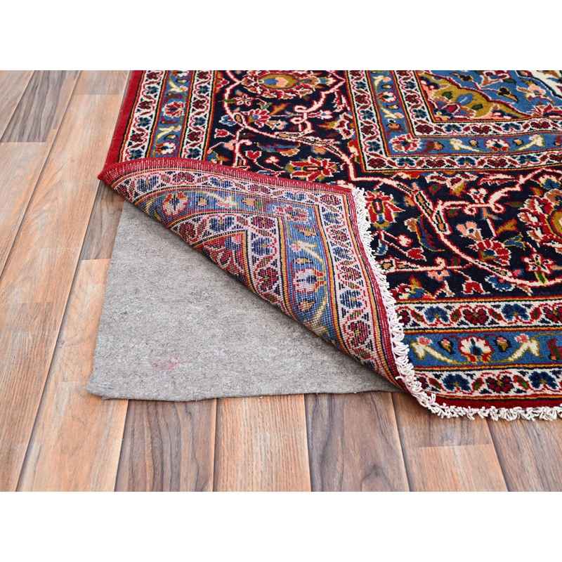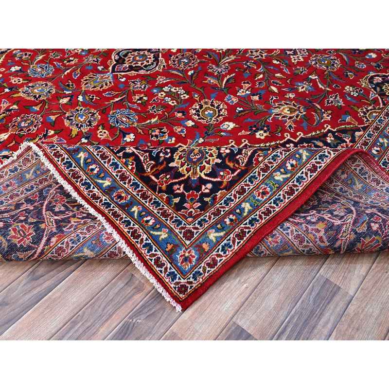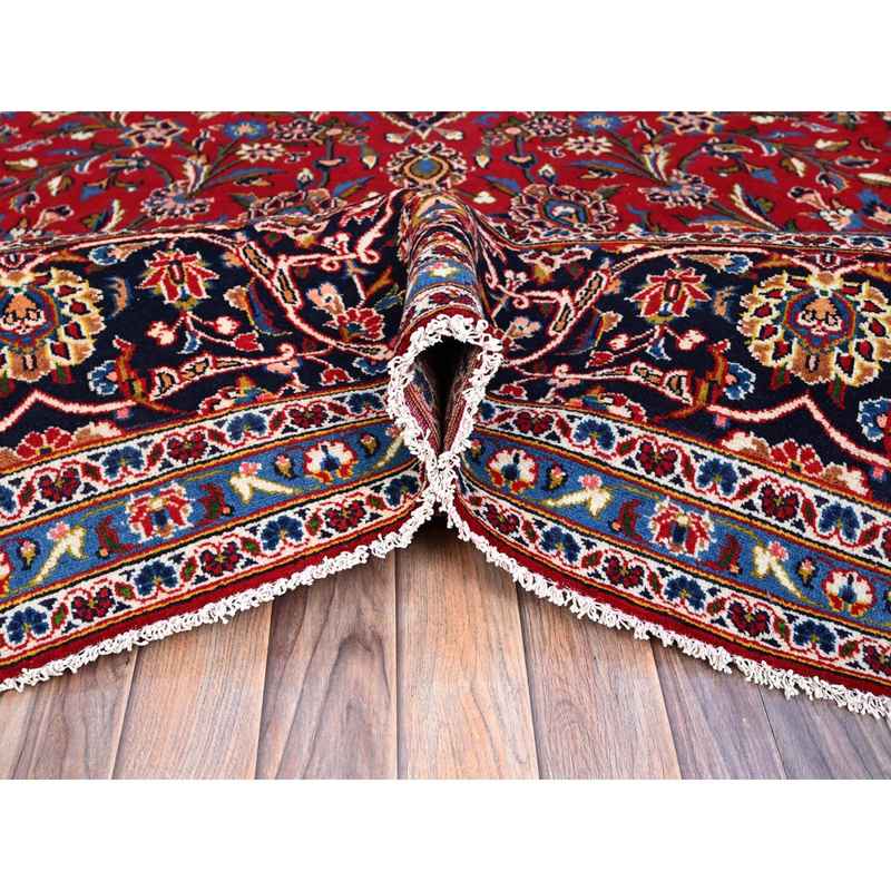 9’9″x15’8″ Madder Red, Good Condition, Sides And Ends Professionally Secured, Vintage Persian Kashan With Central Medallion, Vibrant Wool, Oriental Rug Sh141